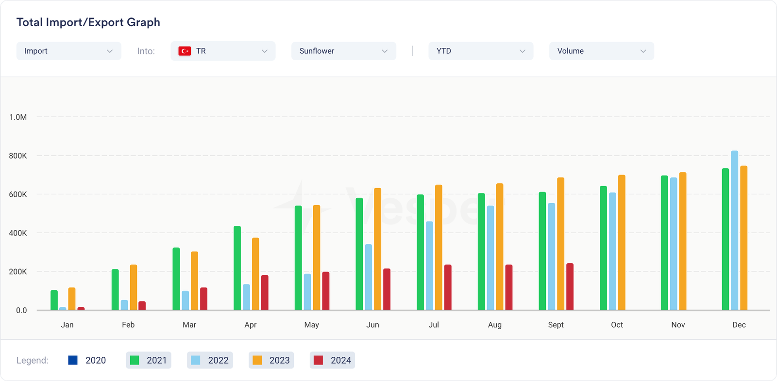 الرسم البياني 2: واردات عباد الشمس التراكمية إلى تركيا (طن متري)