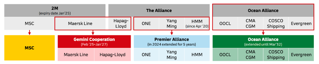 - بعد رحيل Hapag-Lloyd، سيشكل أعضاء THE Alliance HMM و ONE و Yang Ming تحالف Premier Alliance اعتبارًا من فبراير 2025