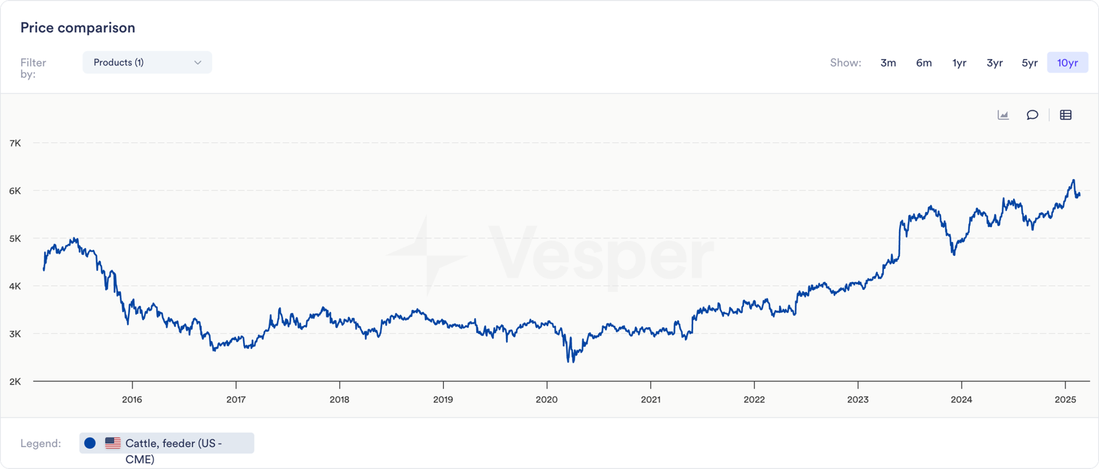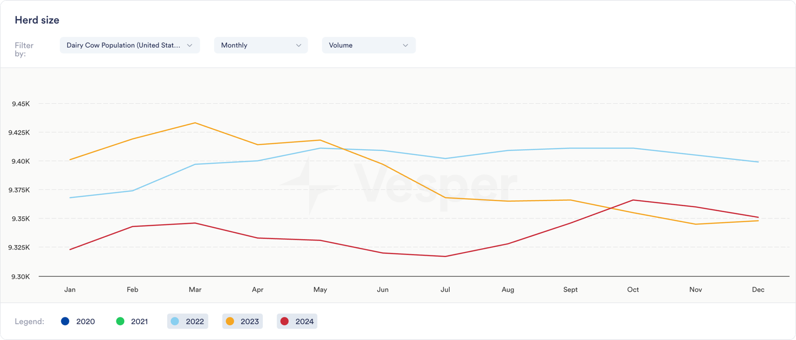 تتعمق التحديات الهيكلية لقطيع الألبان الأمريكي، حيث وصل عدد العجول البديلة إلى أدنى مستوى له منذ 47 عامًا عند 3.914 مليون رأس. في حين توقف توسع قطيع الألبان، فإن الاتجاه الأكثر إثارة للقلق يكمن في تناقص خط أنابيب الحيوانات البديلة، [حيث وصلت أسعار العجول البديلة إلى مستويات قياسية بمتوسط ​​2660 دولارًا أمريكيًا للرأس]. مما يشير إلى نقطة تحول حرجة لاستقرار إمدادات الحليب. بعد الإعدام الكبير في عام 2022، أظهر القطاع علامات على إعادة البناء، لكن هذه الزخم قد تعثر على الرغم من تحسن أسعار الحليب. عامل رئيسي: تحفز أسعار اللحوم المرتفعة المستمرة مزارعي الألبان على الحفاظ على معدلات إعدام مرتفعة، مع استمرار العقود الآجلة للماشية في بورصة شيكاغو التجارية عند أعلى مستوياتها منذ عدة سنوات. تخلق هذه الديناميكية توازنًا غير مستقر حيث يعتمد إنتاج الحليب بشكل متزايد على تحسينات الغلة بدلاً من نمو القطيع. يؤدي التحول إلى تضخيم مخاطر الإنتاج، حيث يمكن أن يكون لأي أحداث مناخية أو قضايا تتعلق بجودة/سعر الأعلاف تأثيرات كبيرة على إجمالي إنتاج الحليب عندما يكون هناك قدر أقل من التخفيف في الأعداد الإجمالية للقطيع. سنراقب عن كثب تقارير إنتاج الحليب القادمة، ولكن الأهم من ذلك، سنراقب مؤشرات حجم القطيع للتغذية في تحليل العرض على المدى الطويل.