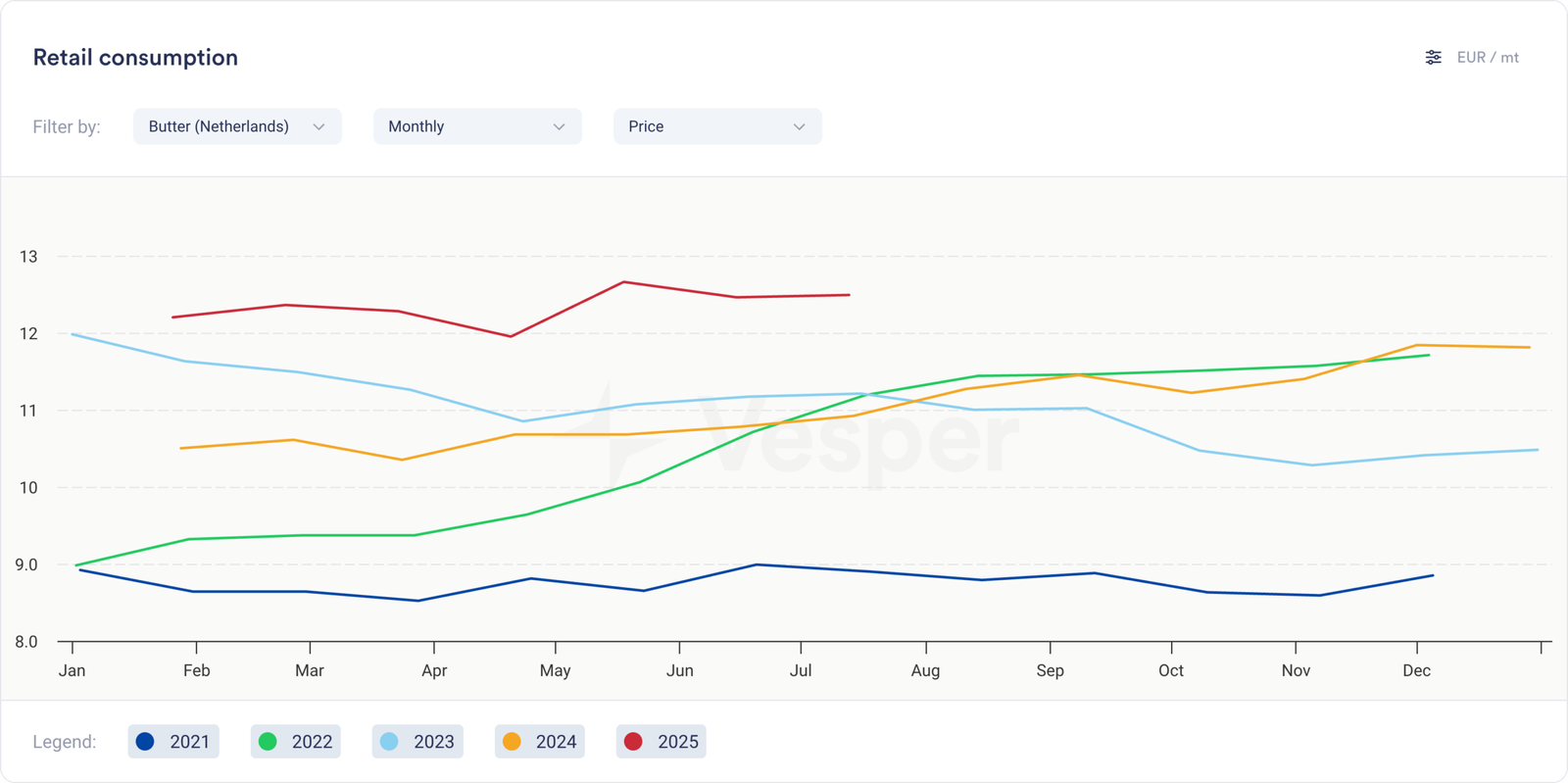 كشفت مراجعة سريعة لأرقام التضخم أنه انتهى بانخفاض طفيف، وذلك بفضل تباطؤ نمو أسعار الطاقة، مما قدم يد العون. ومع ذلك، كان التضخم في أسعار الخدمات، وخاصة الغذاء، أعلى بكثير من علامة 2٪ مرة أخرى. كانت أسعار المواد الغذائية الهولندية أغلى بنسبة 3.8٪ مما كانت عليه قبل عام بالضبط. عند فحص بيانات أسعار التجزئة في أداة استهلاك التجزئة الخاصة بنا، زادت أسعار الزبدة بنسبة 14.38٪. لا يبدو الأمر رائعًا للاستهلاك، ولكنه أيضًا خبر سار: نعلم أن هذه الأسعار ستكون أقل بحلول نهاية العام.