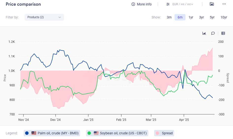يتفق الفريق التحليلي بشكل عام مع هذا. في العديد من السنوات السابقة، كانت الأسعار الشهرية تحت الضغط في شهري أبريل ومايو بسبب تعافي الإنتاج وارتفاع المخزون. هذا العام، يتوقع السوق نمطًا مشابهًا، نظرًا للنمو البطيء في الصادرات حتى الآن والأرقام الواعدة للإنتاج. لا يزال خام برنت رخيصًا، وتتوقع المنظمات الصناعية أن يظل منخفضًا. يمكن أن يكون فارق سعر زيت النخيل الخام وزيت فول الصويا بمثابة الحد الأدنى للسعر حيث قد يزداد الطلب من الهند والصين. النظرة العامة مستقرة إلى هبوطية معتدلة.