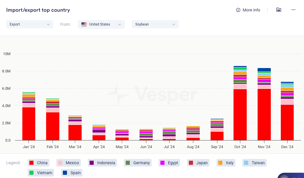 - هذا يضع موردي فول الصويا الأمريكيين في وضع صعب حيث توجد الآن إمكانية قوية لانخفاض الطلب من المشترين الرئيسيين