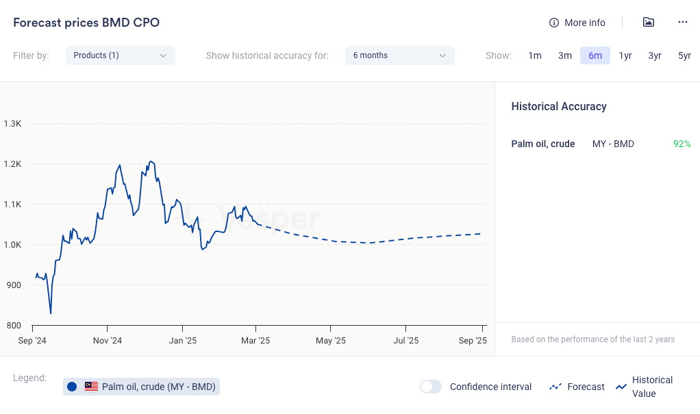 على المدى الطويل، يشير الانتعاش الموسمي في إنتاج زيت النخيل منذ أبريل والإنتاج المتوقع الأكبر لعام 2025 في إندونيسيا إلى أن الأسعار هذا العام ستكون أقل من العام الماضي. هناك أيضًا شكوك تحيط بتنفيذ B40 في إندونيسيا، والذي لا يزال عاملاً متأرجحًا. بشكل عام، النظرة طويلة الأجل هبوطية قليلاً.