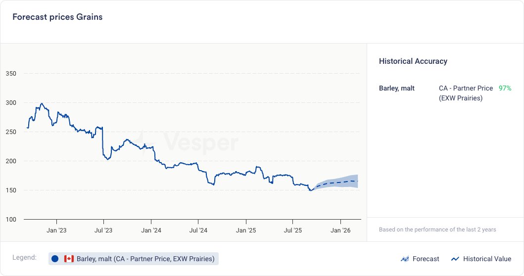 • نظرة التعلم الآلي: نمو الأسعار للشعير من المصنع في كندا نحو ديسمبر، على الرغم من أنه من المتوقع أن تظل أسعار موسم 2025/26 الإجمالية أقل من أسعار 2024/25