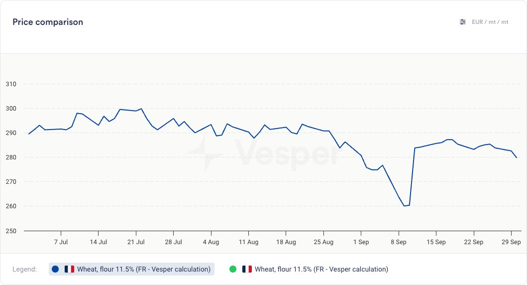 الشكل 1: حساب الدقيق الفرنسي (يورو/طن)
