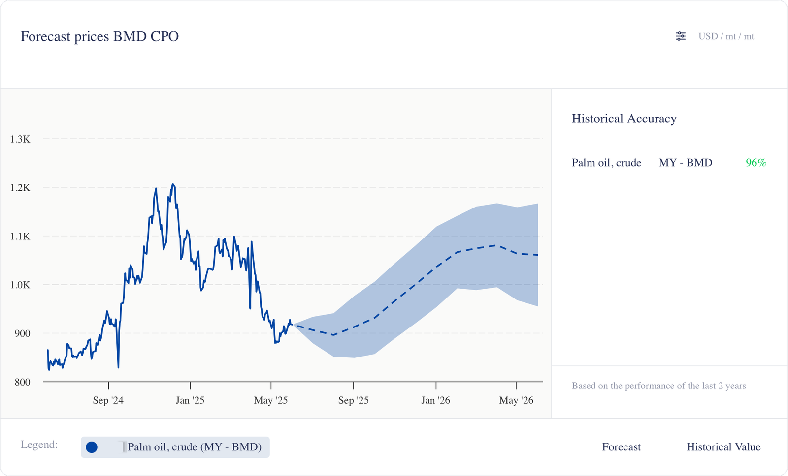 الرسم البياني 6: توقعات أسعار زيت النخيل BMD (دولار أمريكي/طن متري)