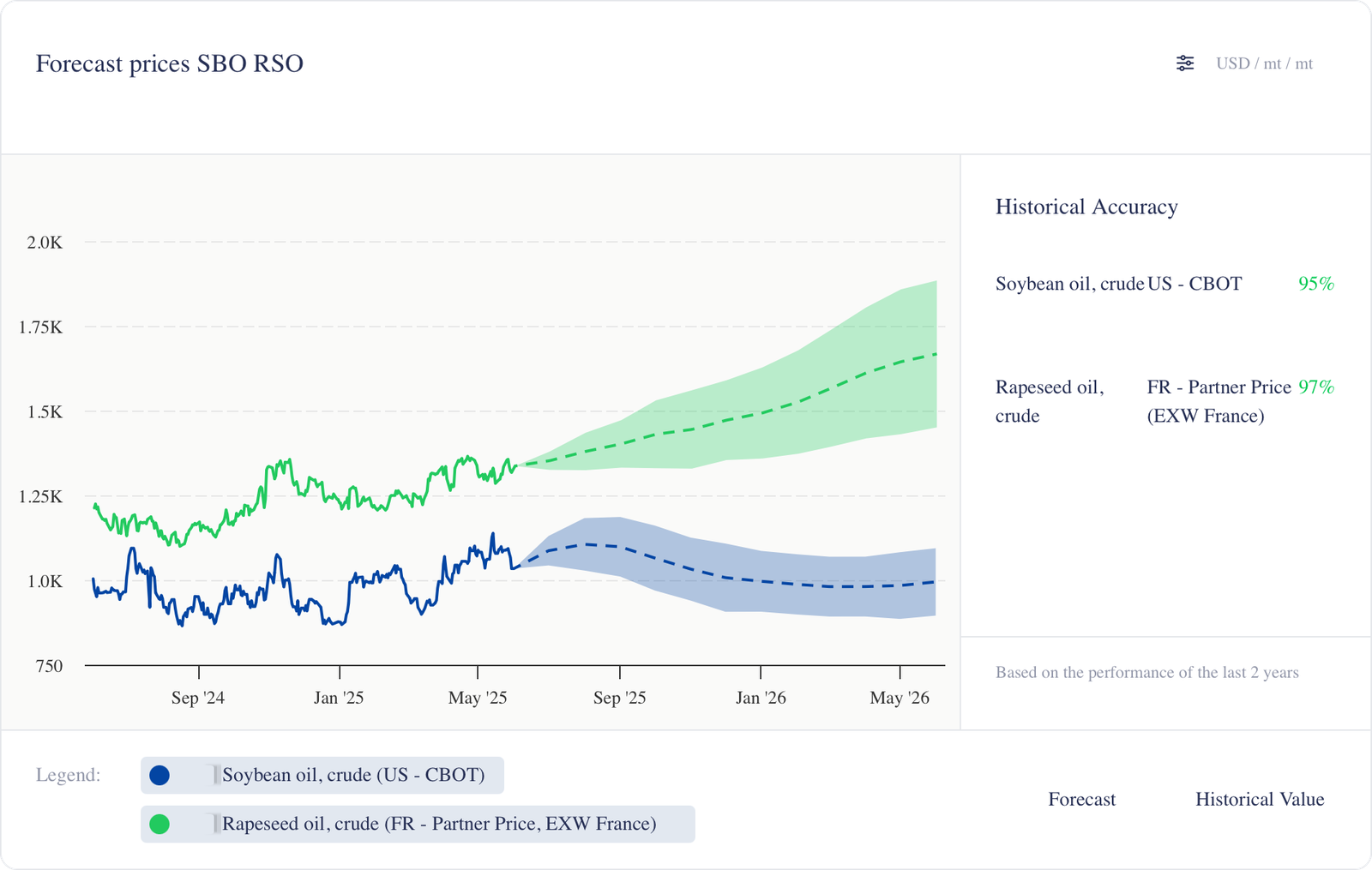 نحن أقل تفاؤلاً على المدى القصير. يأتي محصول أكبر في الاتحاد الأوروبي (حوالي 19 – 19.5 مليون طن متري، +2.5 مليون طن متري على أساس سنوي) إلى السوق في الوقت الذي يعاني فيه المطاحن من هوامش الديزل الحيوي الضعيفة وتدفق زيت الطهي المستعمل المستورد. يجب أن يؤدي ضغط الحصاد من يوليو، جنبًا إلى جنب مع حصاد بذور اللفت وفول الصويا في كندا والولايات المتحدة في أغسطس-سبتمبر، إلى خفض الأسعار أولاً.