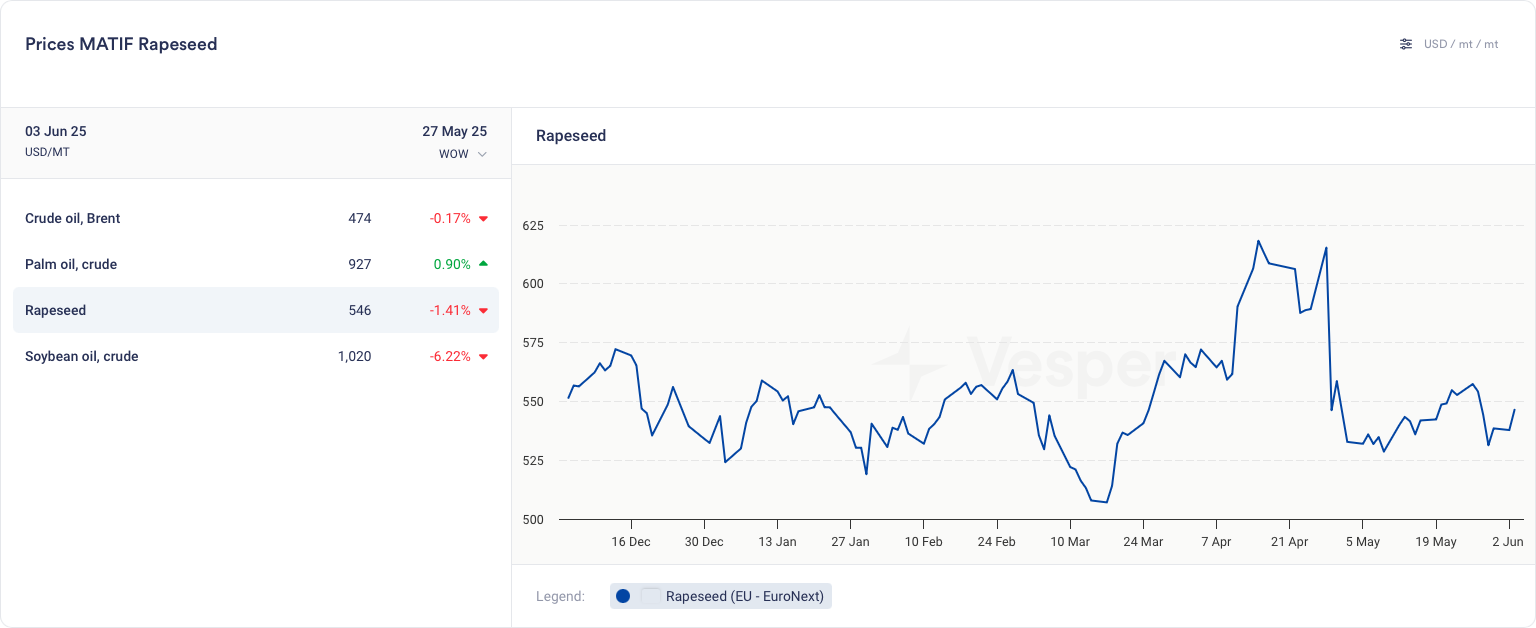 - MATIF rapeseed EUR 473 / mt (من 489 / mt)