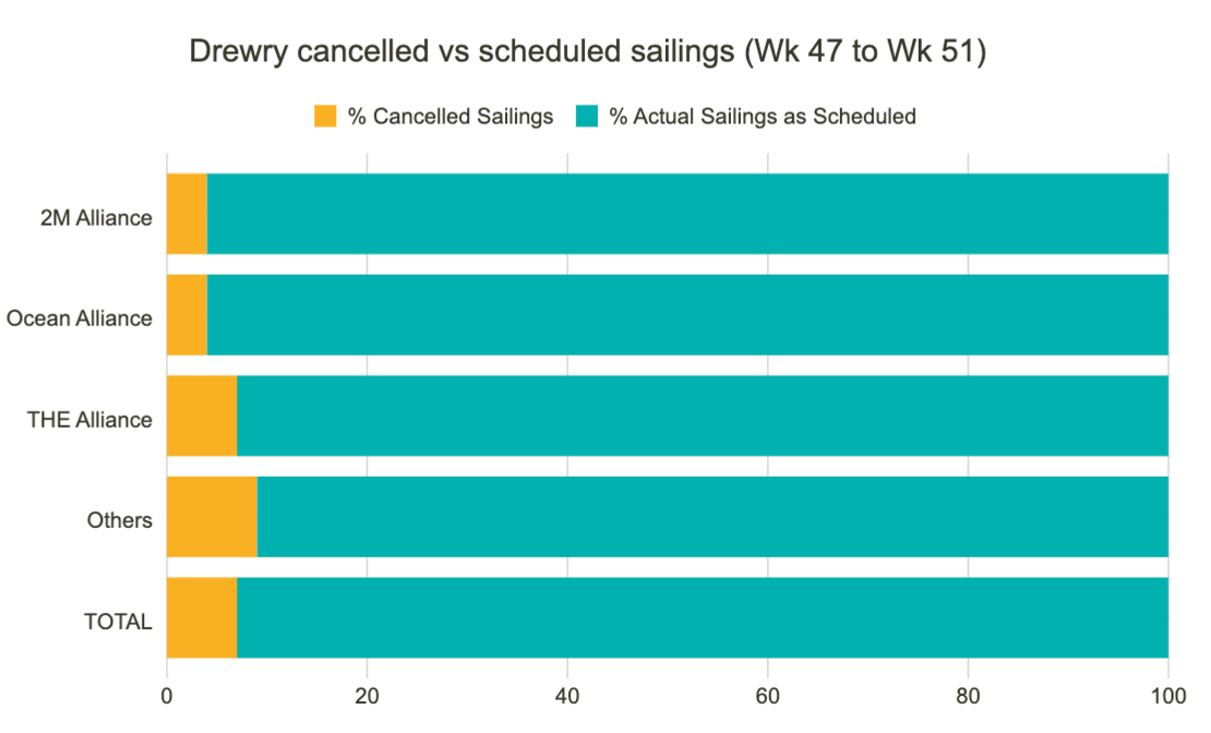 للأشهر المقبلة، من المتوقع أن يبلغ معدل إلغاء الرحلات **7%** حيث تستخدم شركات النقل “مجمعات التدحرج” لتأخير شحنات الحاويات.