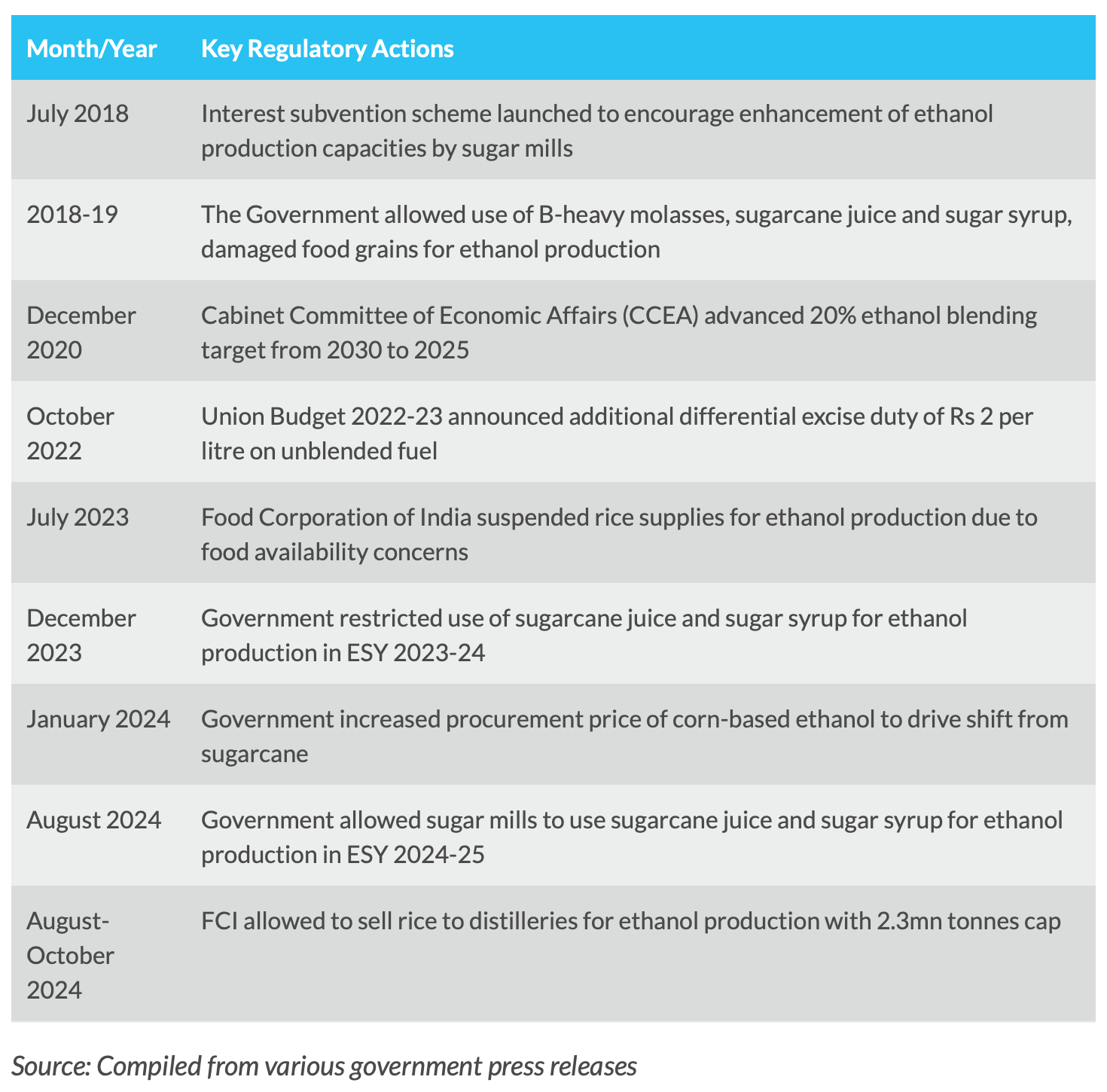 ### تزايد الشكوك التنظيمية فيما يتعلق بالتسعير واستخدام المواد الأولية والمزج يمثل تحديات كبيرة لاندفاع الهند نحو الإيثانول.