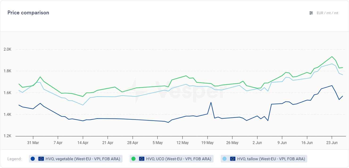 • تتوقع السوق أن هذا سيؤدي إلى زيادة الطلب على HVO و UCO، والتي ستكون مطلوبة لتلبية التزامات المزج، وبالتالي دعم أسعار اللقيمات