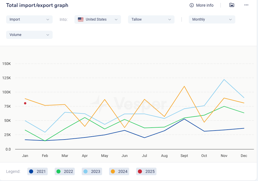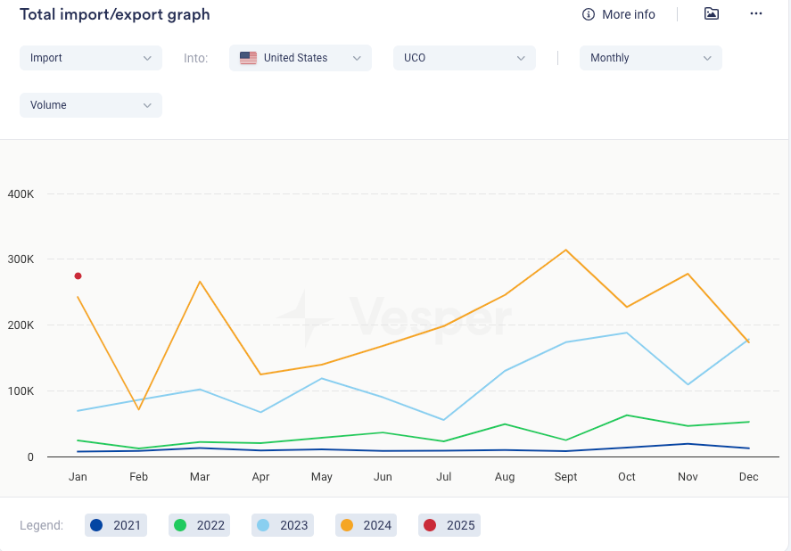 • يبدو أن الديزل الحيوي ليس على القائمة بعد. في عام 2024، صدرت المفوضية الأوروبية 865,000 طن متري من الديزل الحيوي إلى الولايات المتحدة، مستفيدة من المزايا الضريبية الأمريكية