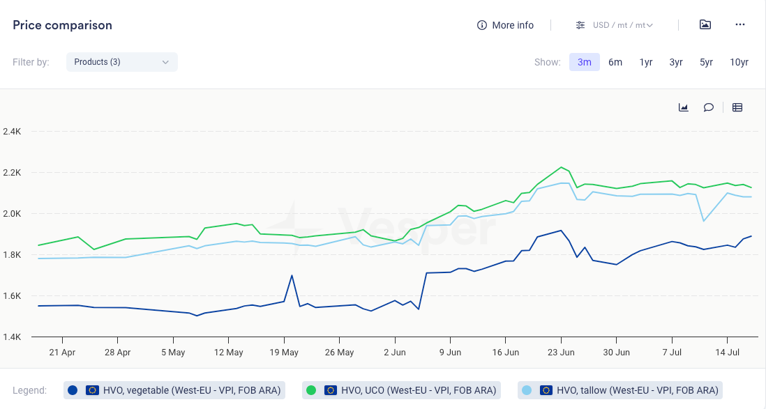 Chart 2: FOB ARA HVO Prices (USD/mt)
