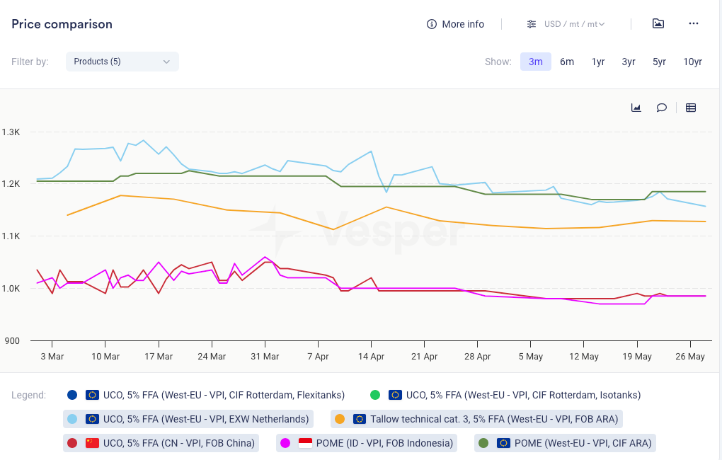 - انخفضت أسعار دهون الحيوانات أيضًا بشكل طفيف تحت ضغط UCO