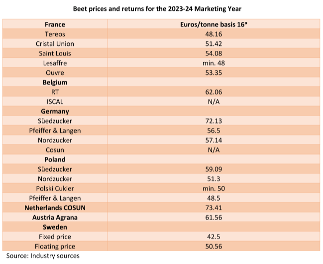 سيتأثر أيضًا مقدار البنجر المزروع في العام المقبل بشكل كبير بأسعار البدائل مثل بذور اللفت والقمح. وفقًا لمنظمة مزارعي البنجر الفرنسية CGB، فإن نقطة التعادل للبنجر هي 35 يورو / طن. هذا يعني أن سعر السكر البريطاني البالغ 33 جنيهًا إسترلينيًا قريب جدًا من نقطة التعادل هذه. في حين تم الإبلاغ عن أسعار البنجر البولندية بين 28 و 32 يورو للموسم المقبل، تجدر الإشارة إلى أنه كما هو مذكور أعلاه، يقوم المزارعون بتسويق اللب الذي تبلغ قيمته 2 يورو إضافية للطن، وثانيًا أن المزارعين البولنديين يستفيدون من إعانات الاتحاد الأوروبي في شكل دعم الدخل المزدوج الذي يضيف حوالي 5.5 يورو للطن.