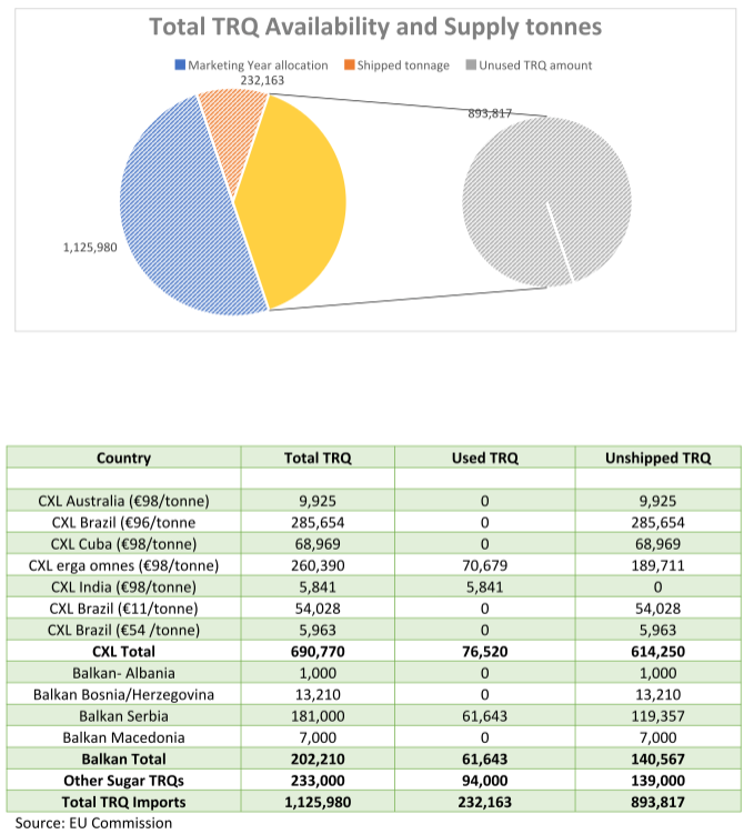 انخفضت واردات سكر TRQ كما عرفنا منذ فترة. كم انخفضوا هو أمر مثير للدهشة. يوضح الرسم البياني والجداول أدناه هذا للسنة التسويقية 2023-24