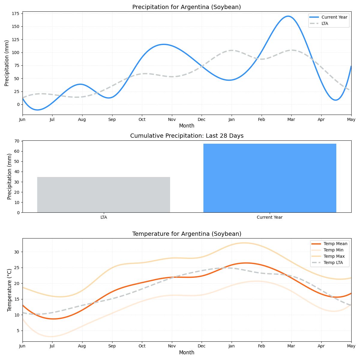 • المخاطر الرئيسية: إنتاج فول الصويا الكبير يجعله عرضة للمخاطر المتعلقة بالطقس على الرغم من الانحرافات المناخية الطفيفة.