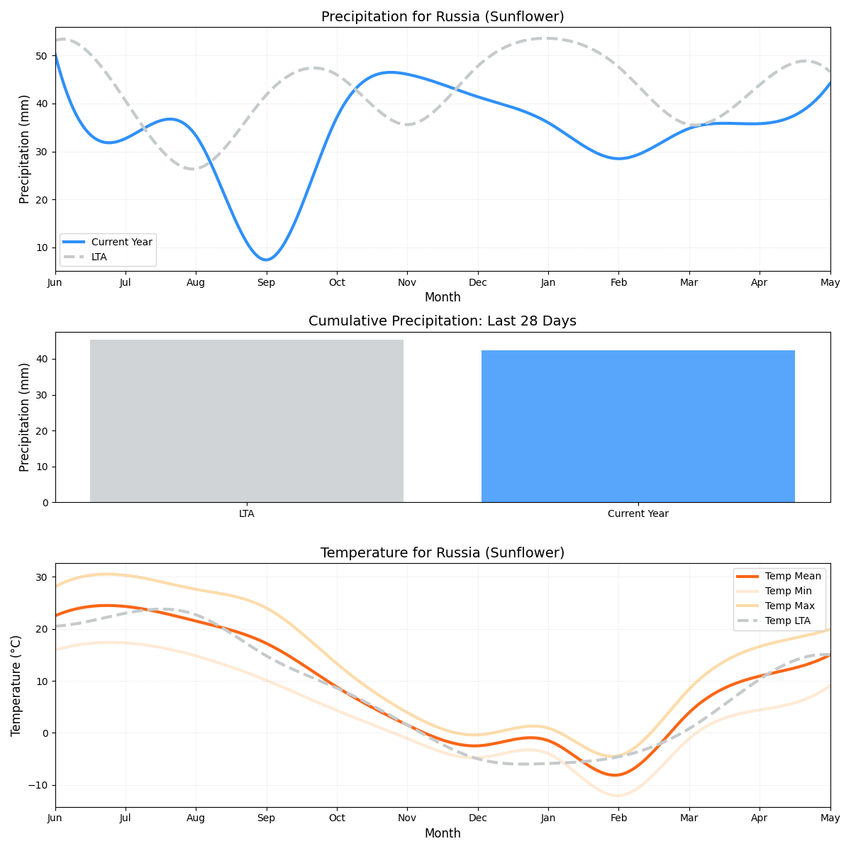 • المخاطر الرئيسية: ارتفاع المخاطر بسبب مساحة زراعة عباد الشمس الكبيرة والانحرافات الجوية المعتدلة.