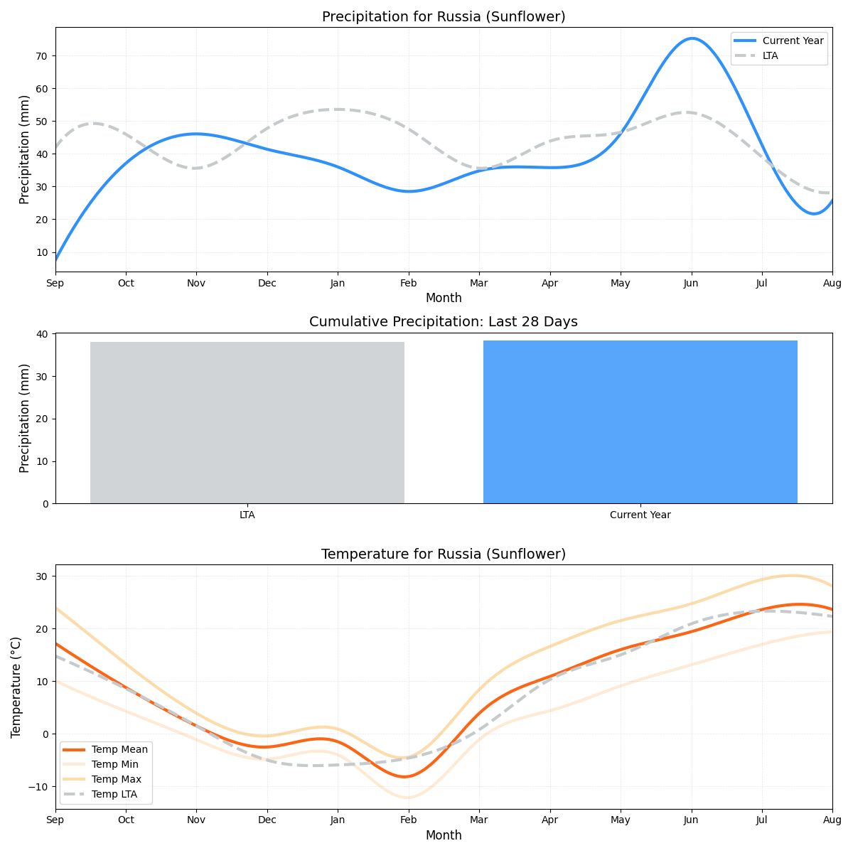 - الخطر الرئيسي: تؤدي منطقة الزراعة الكبيرة إلى رفع مستوى المخاطر في المنطقة – لا تزال انحرافات الطقس كبيرة هذا الموسم.