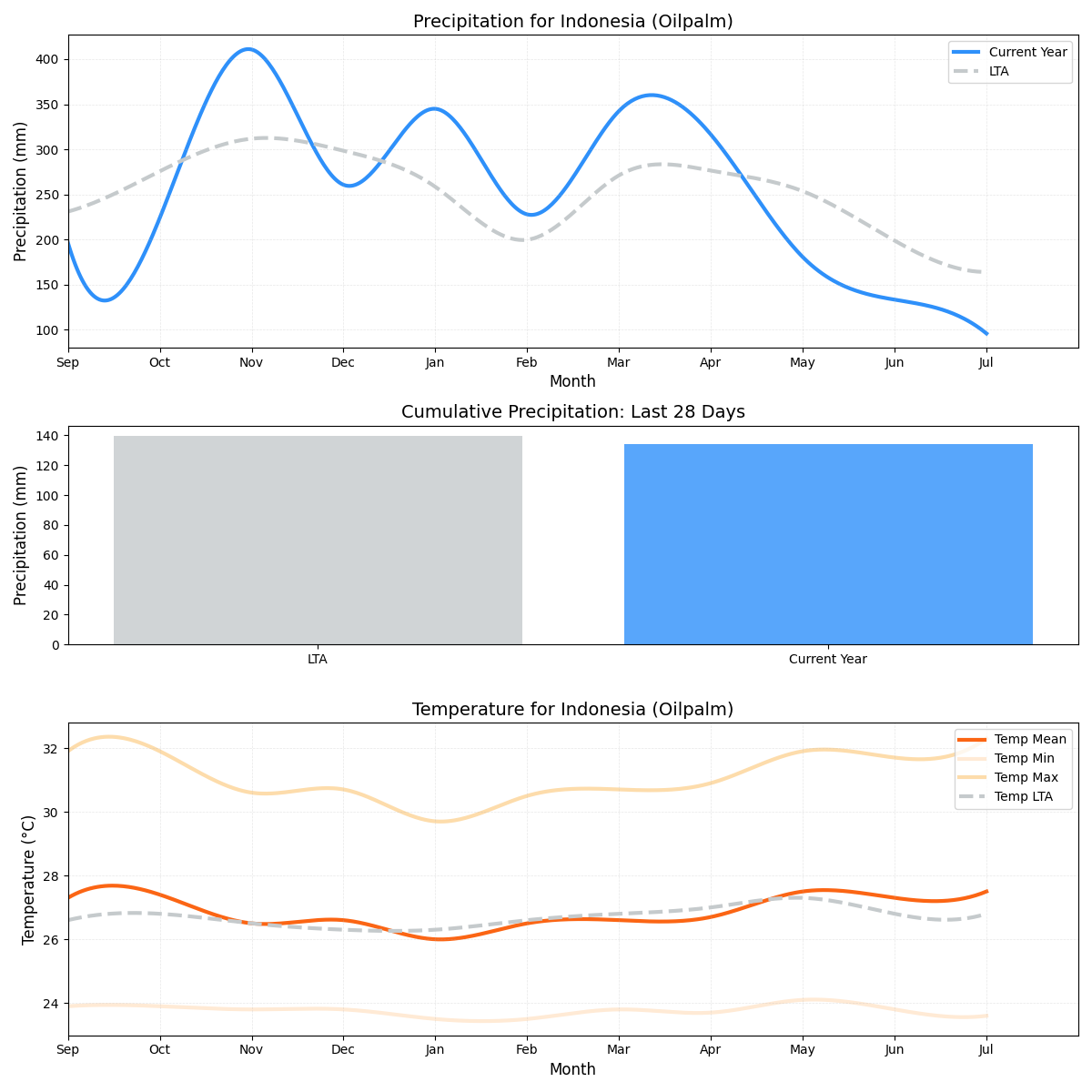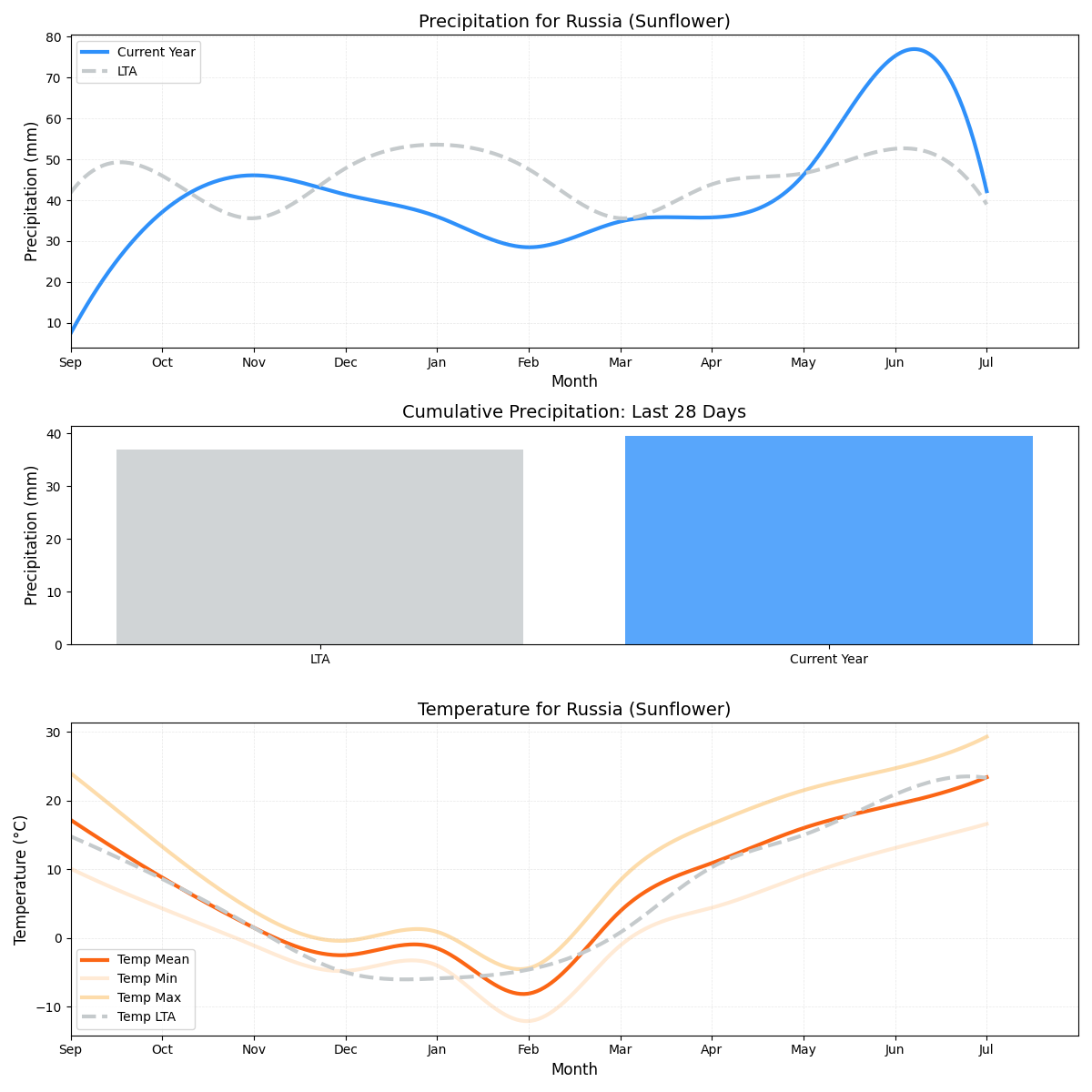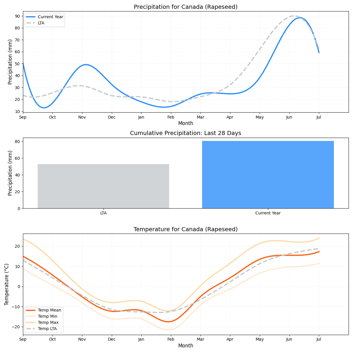 • هطول الأمطار: ما يقرب من 26٪ أقل من المتوسط (6.63 ملم مقابل 8.92 ملم) مما يشير إلى ظروف هطول أمطار أقل من مثالية.