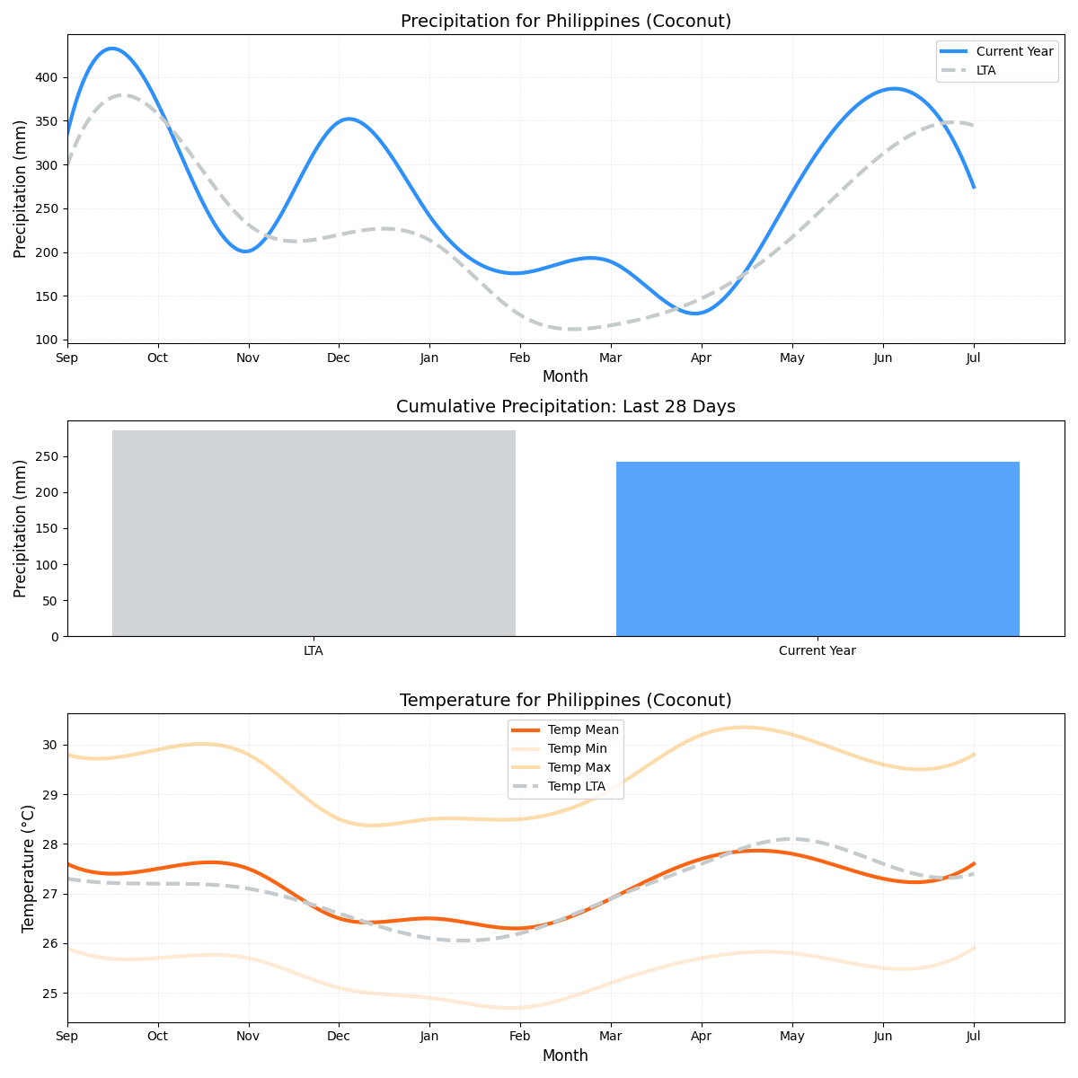 • تعمل منطقة زراعة جوز الهند الكبيرة على تضخيم أبعاد المخاطر، ومع ذلك، فقد سجلت انحرافًا أقل حدة عن الظروف الجوية المعتادة.