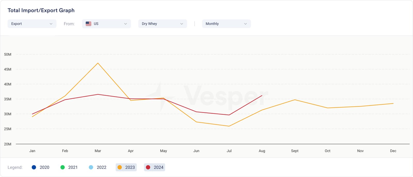 نما الجبن على أساس سنوي ولكنه لم يكن جيدًا بناءً على الأحجام من الأشهر السابقة، مما يعني أن التدفق الجانبي لمصل اللبن لم يكن ملحوظًا كما كان في الأشهر السابقة. نظرًا لأن إنتاج WPI وصل إلى أعلى مستوى له على الإطلاق عند 17.1 مليون رطل في شهر واحد، لم يكن هناك ما يكفي من المواد الصلبة لمصل اللبن المتبقية للحفاظ على إنتاج مصل اللبن الجاف و WPC80 مرتفعًا.