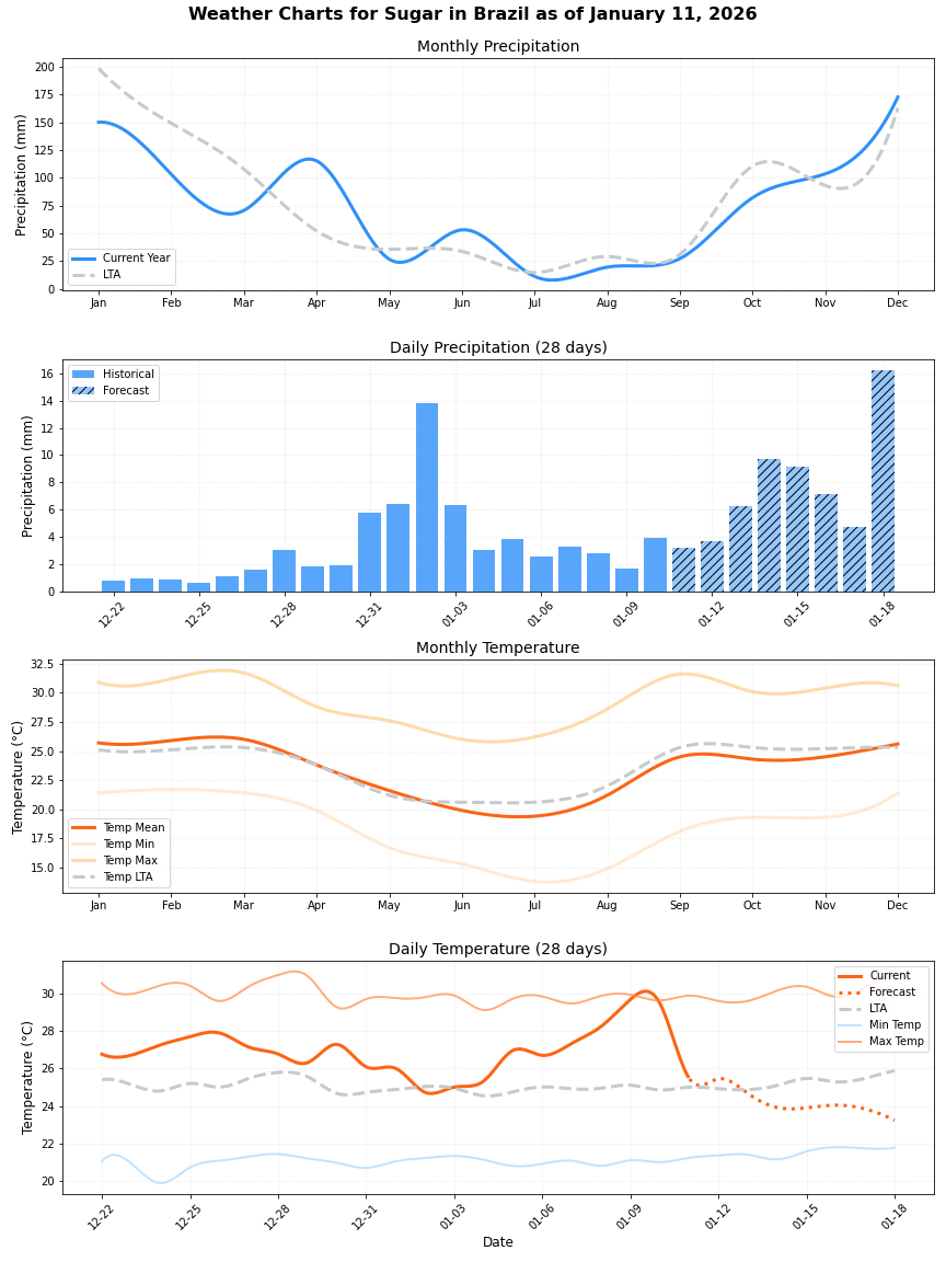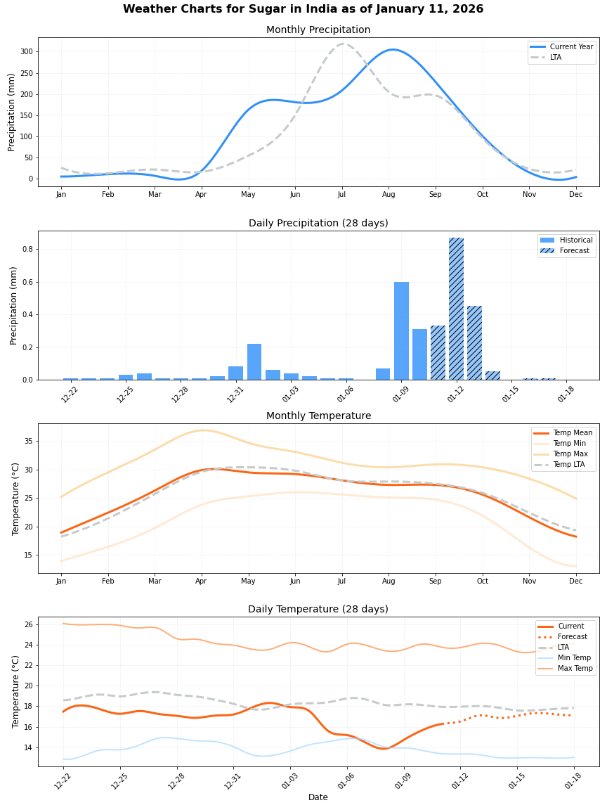 - المخاطر الرئيسية: على الرغم من إنتاج قصب السكر المعتدل، فإن فترة الجفاف الممتدة ترفع من المخاطر.