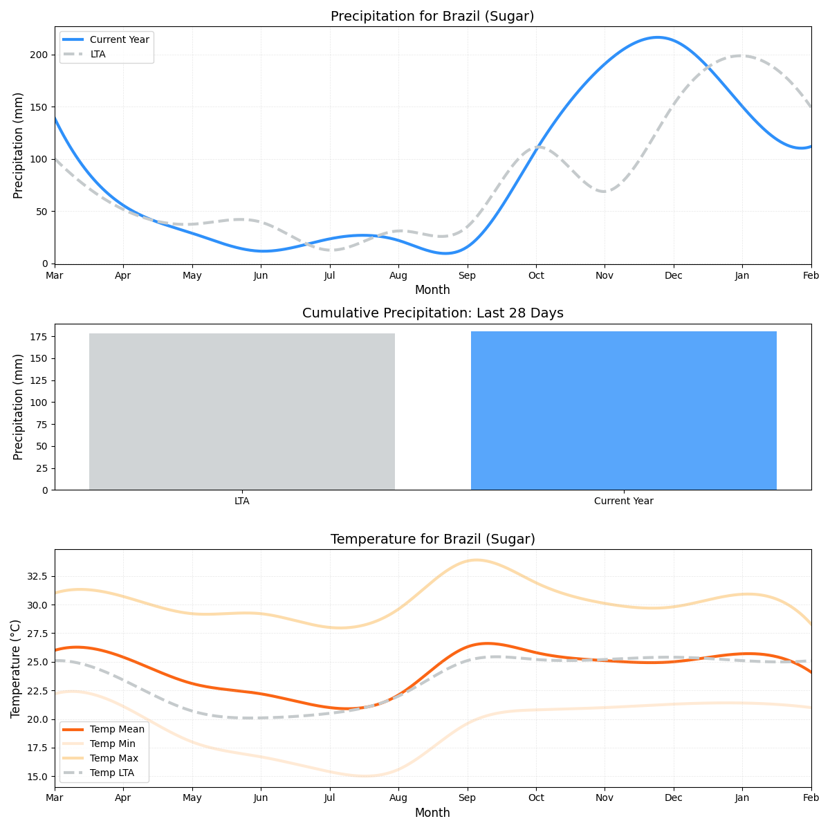 • الخطر الرئيسي: خطر كبير بسبب انحرافات الطقس الشديدة في منطقة إنتاج قصب السكر الهامة.