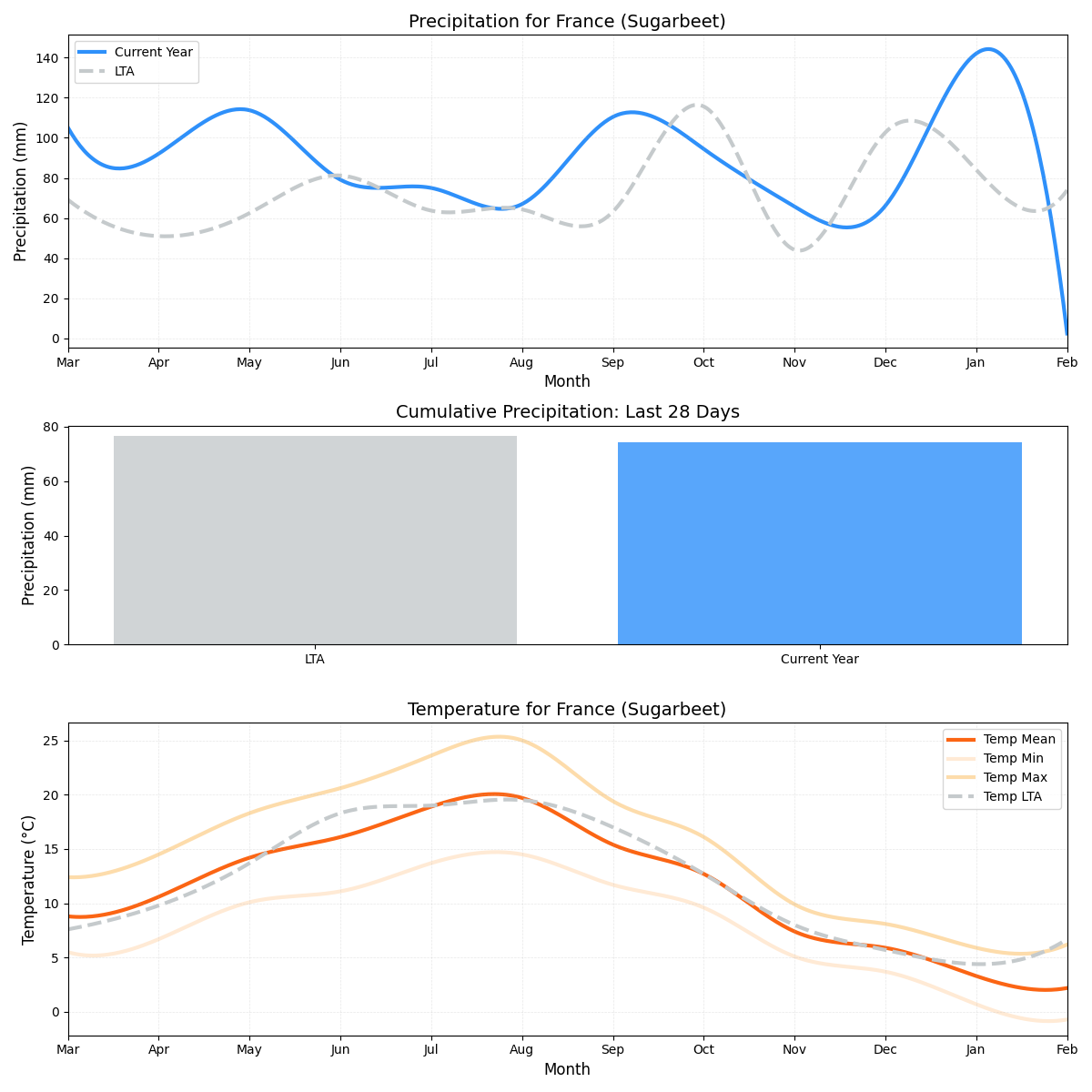• الخطر الرئيسي: خطر جدير بالملاحظة مع كون هذه المنطقة هي منطقة زراعة بنجر السكر الرئيسية في فرنسا. يمكن أن تؤثر الظروف الجوية الحالية بشكل كبير على الإنتاج.
