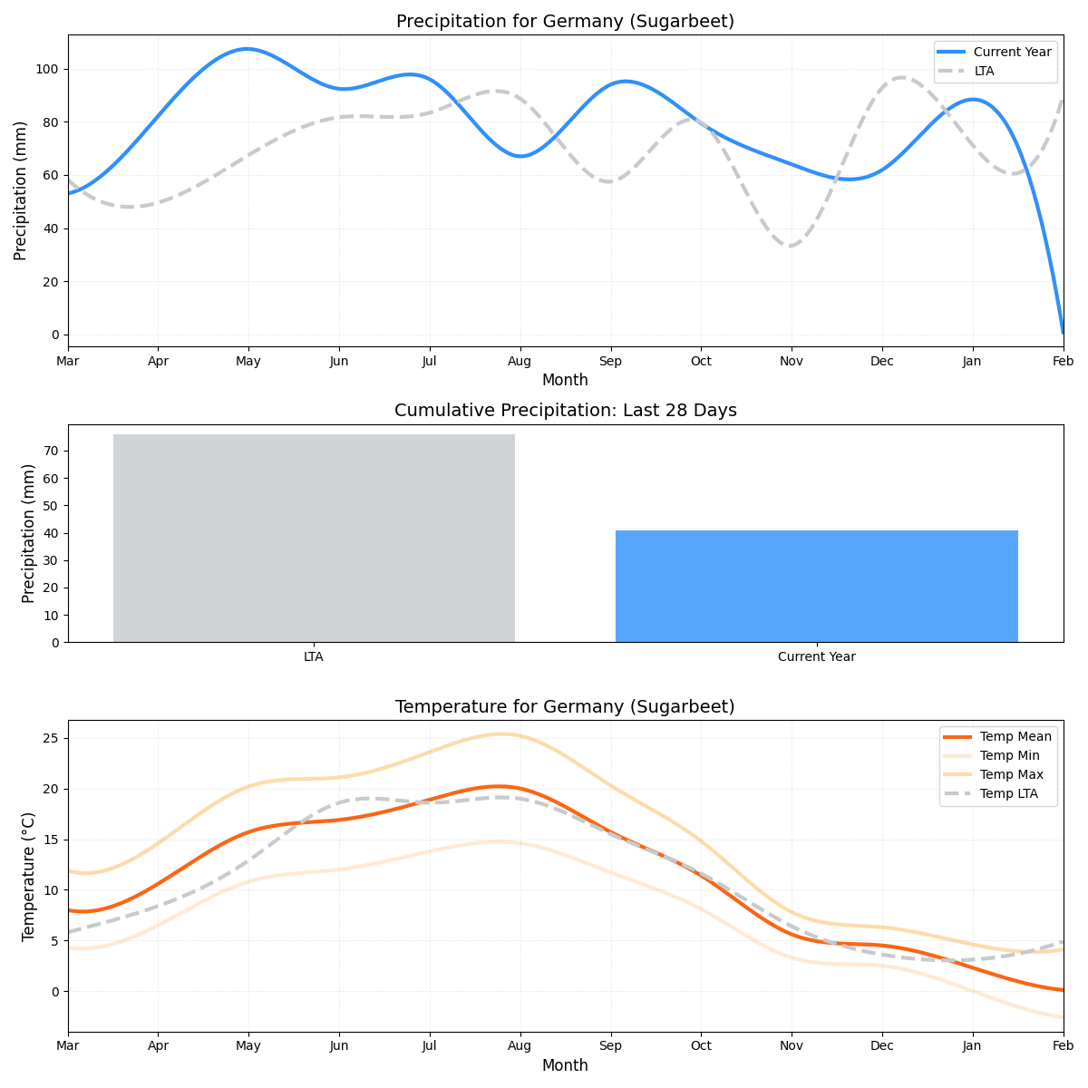 • درجة الحرارة: تحول طفيف مع 2٪ فوق المتوسط طويل الأجل (16.22 درجة مئوية مقابل 15.95 درجة مئوية).