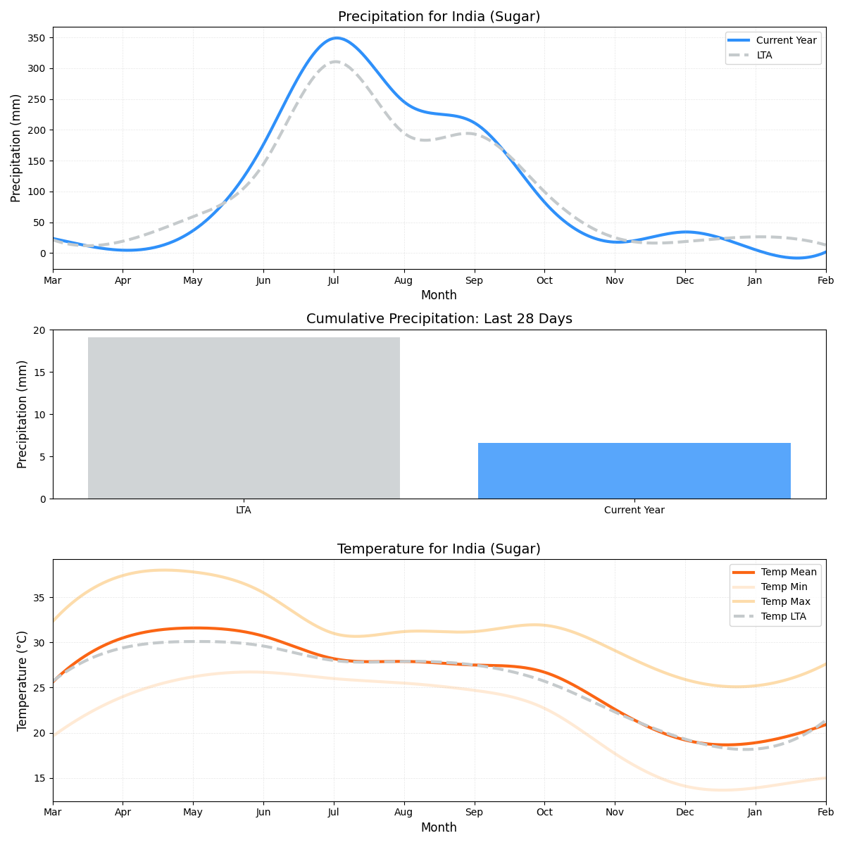 • الخطر الرئيسي: خطر شديد بسبب التغيرات البيئية الكبيرة في منطقة رئيسية لزراعة قصب السكر. ينصح بالمراقبة العاجلة.