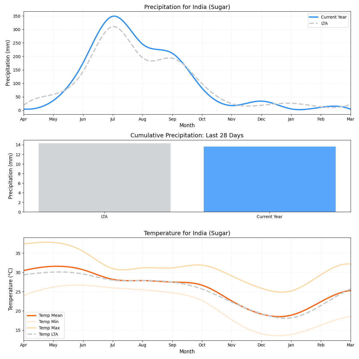 - هطول الأمطار:أقل من المتوسط بنسبة 18٪ (1.45 ملم مقابل 1.77 ملم)، وهو شرط جوي آخر قد يؤثر على تطور المحصول.