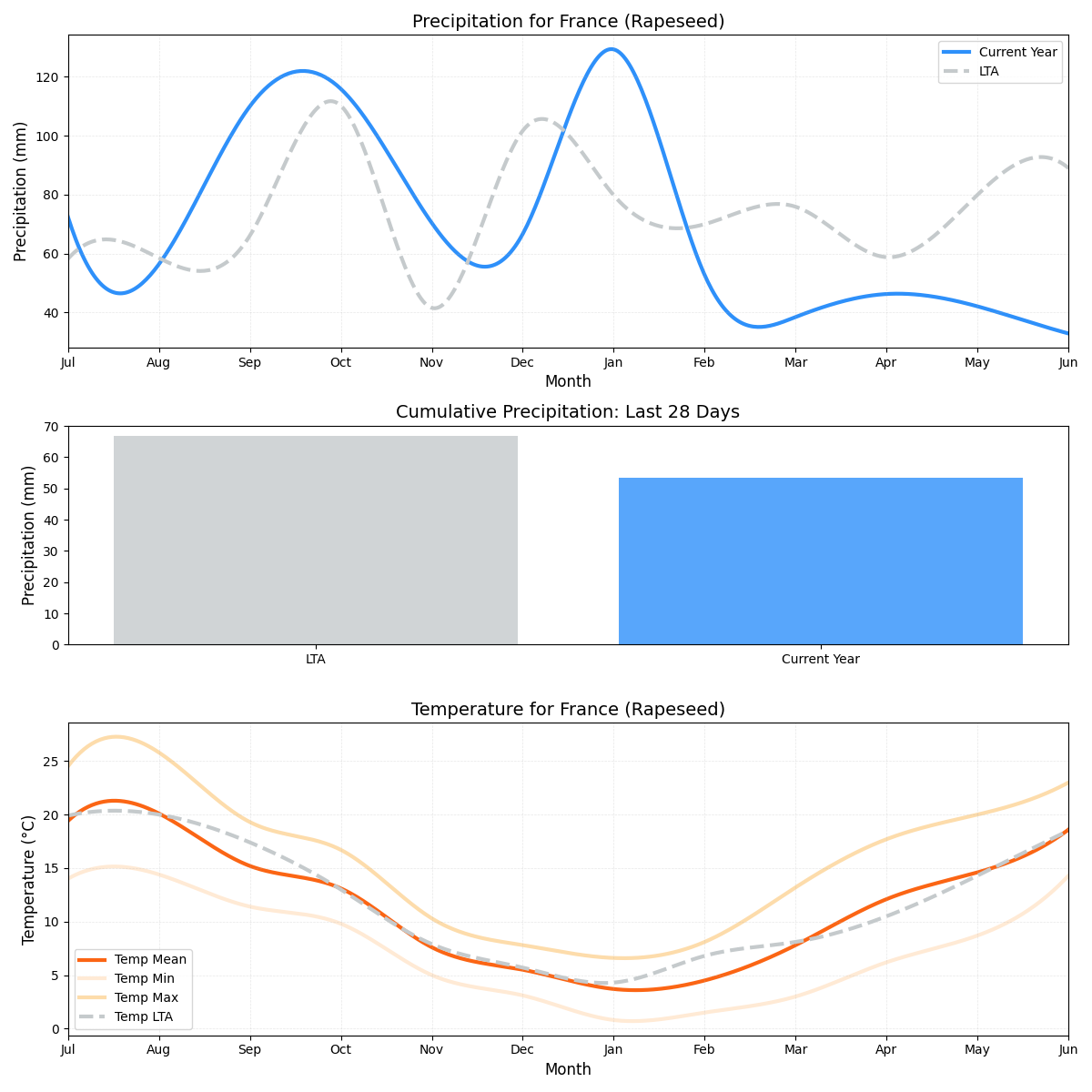 - هطول الأمطار: 4.3٪ أقل من المتوسط (7.50 ملم مقابل 7.84 ملم).