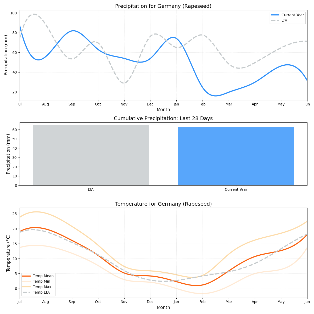 - المخاطر الرئيسية: زيادة متواضعة في المخاطر بسبب منطقة زراعة بذور اللفت الكبيرة، ولكن انحرافات الطقس أقل حدة من الجنوب الشرقي.
