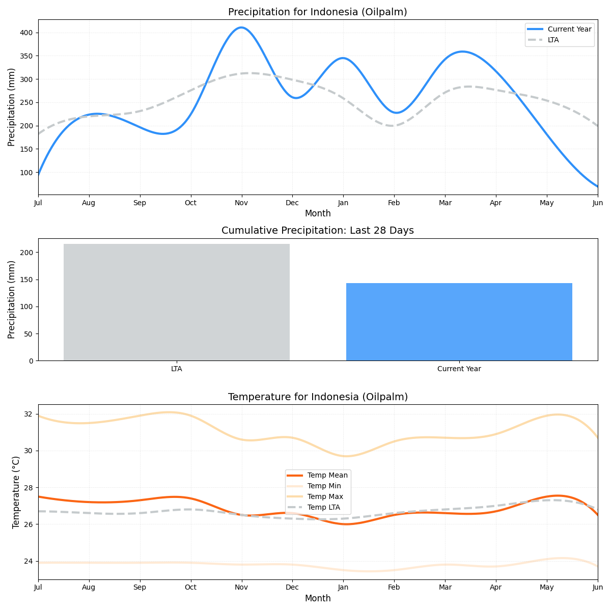 - درجة الحرارة: انخفاض بنسبة 3.3٪ عن المتوسط، مع درجات حرارة حالية تبلغ حوالي 25.87 درجة مئوية مقارنة بـ 26.76 درجة مئوية المعتادة.