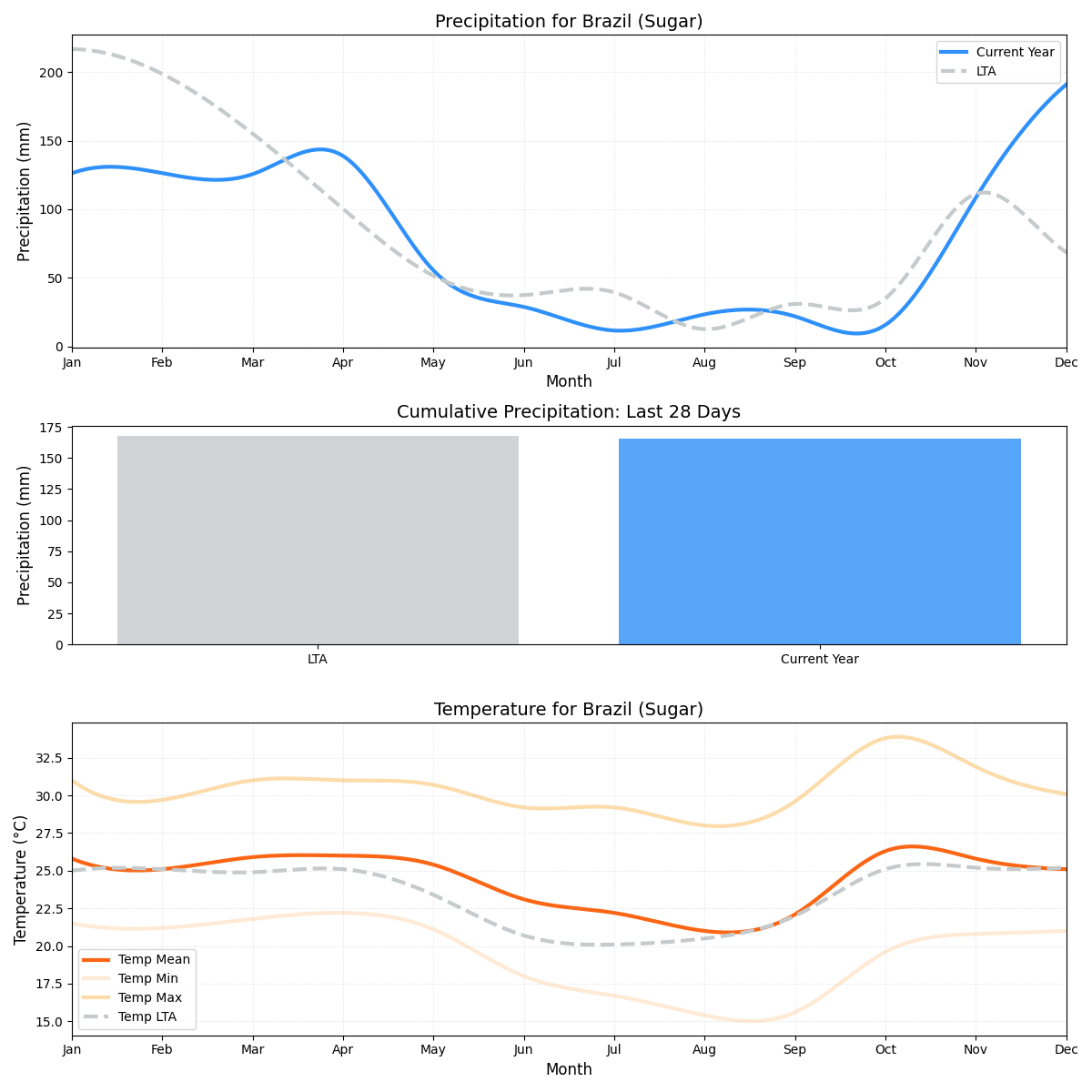 • المخاطر الرئيسية: إنتاج معتدل لقصب السكر، لكن الانحرافات الجوية الملحوظة ترفع درجة المخاطر في المنطقة.