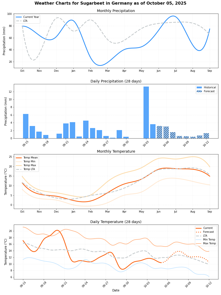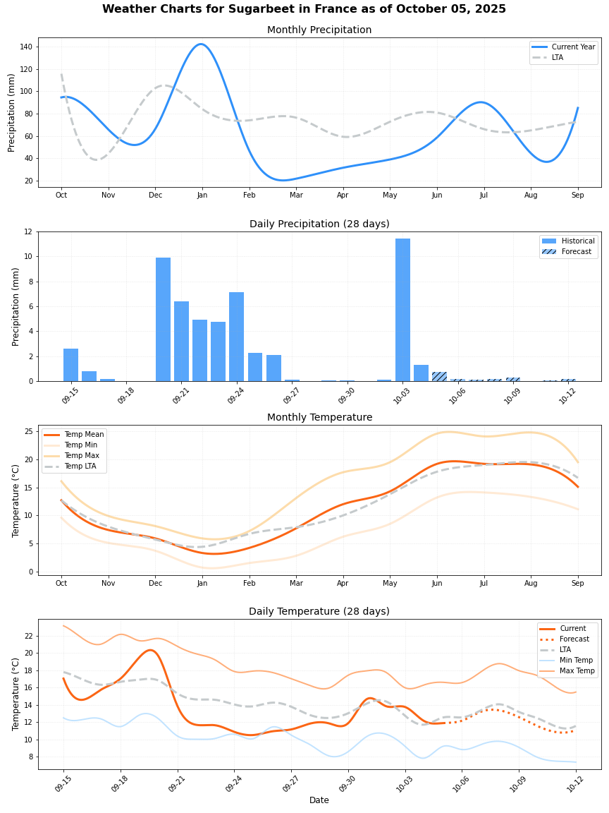 • المخاطر الرئيسية: مع زراعة كبيرة لبنجر السكر، تساهم الأمطار ودرجة الحرارة الأقل قليلاً من المتوسط في زيادة المخاطر.