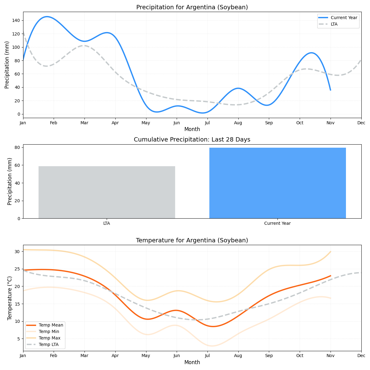 - الخطر الرئيسي: زيادة في المخاطر بسبب هطول الأمطار الأقل من المتوسط وإنتاج فول الصويا المرتفع.