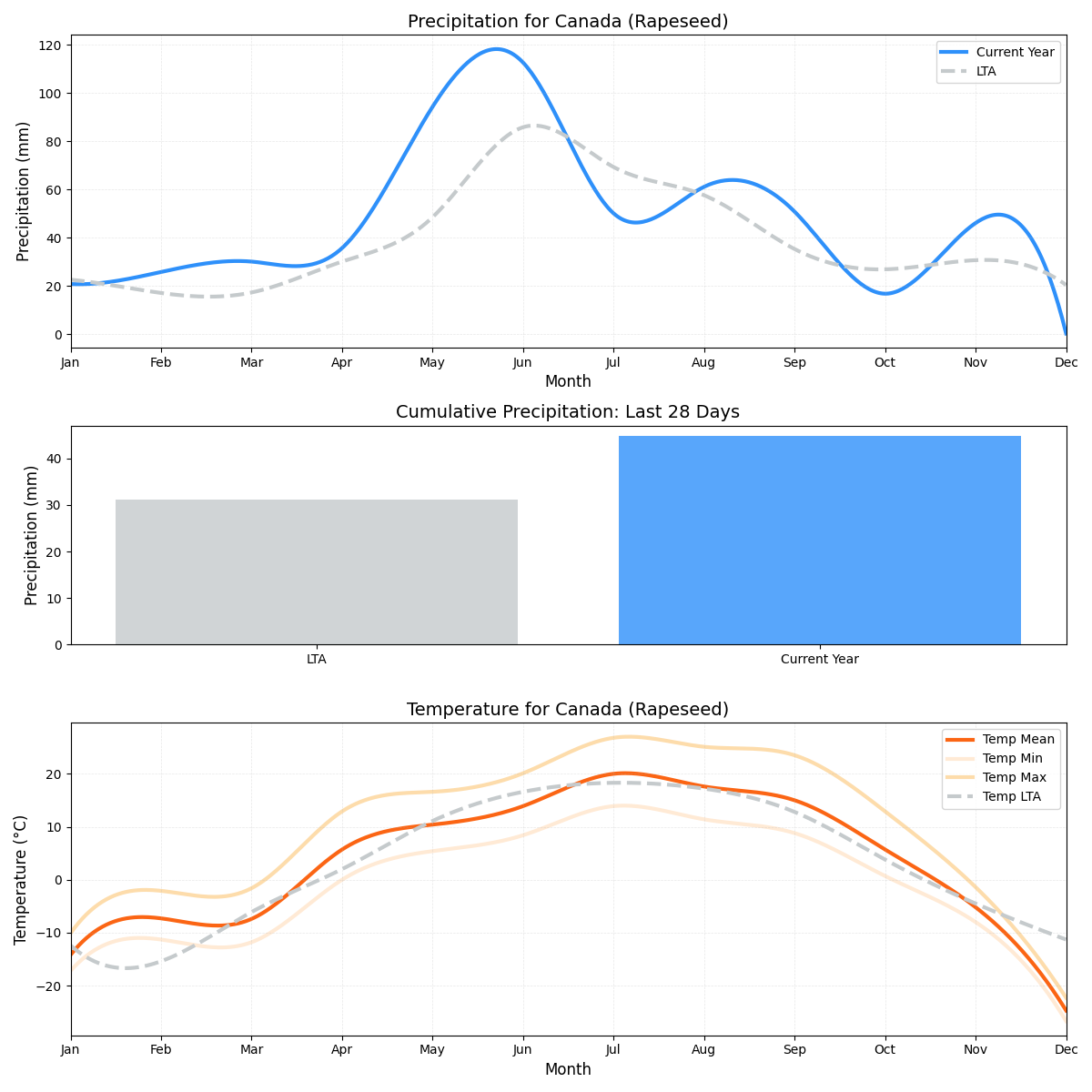 • هطول الأمطار: أقل من المتوسط بنسبة 36.30٪ مقارنة بالمتوسط طويل الأجل (1.79 ملم مقابل 2.81 ملم).