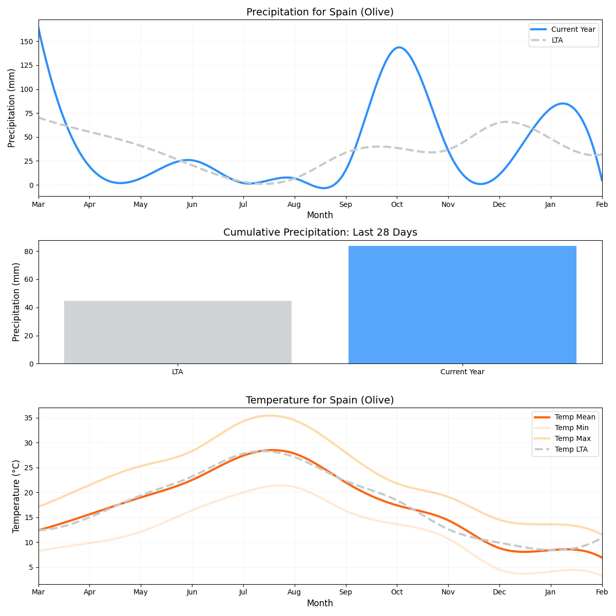 - درجة الحرارة: انخفضت بنسبة 31٪ (3.23 درجة مئوية مقابل متوسط 4.72 درجة مئوية)، مما يؤثر سلبًا على نمو المحاصيل.
