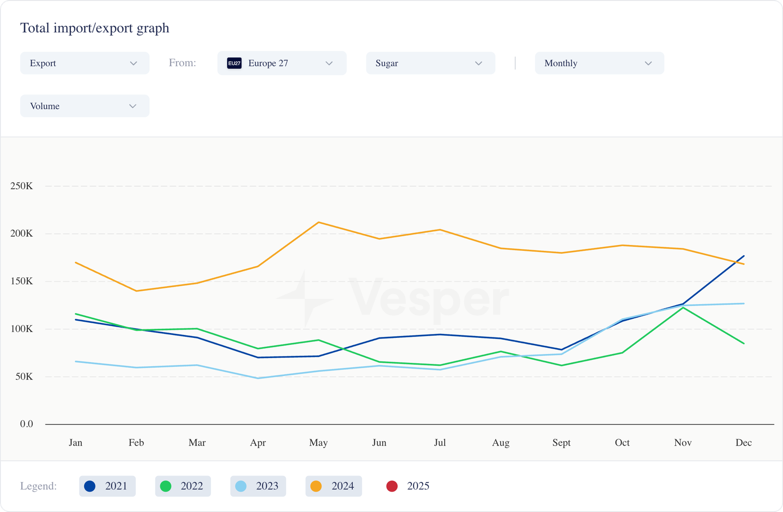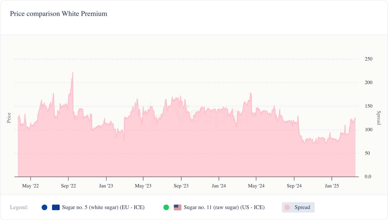- مؤشر أسعار فيسبير الألماني (19/03/2025) للسكر عند 605 يورو للطن المتري DAP. يبلغ سعر السكر في مؤشر VPI الهولندي 590 يورو للطن المتري EXW. يبلغ سعر السكر في مؤشر VPI البولندي الآن 565 يورو للطن المتري DAP، وسعر السكر في مؤشر VPI الإسباني الآن 615 يورو للطن المتري DAP؛