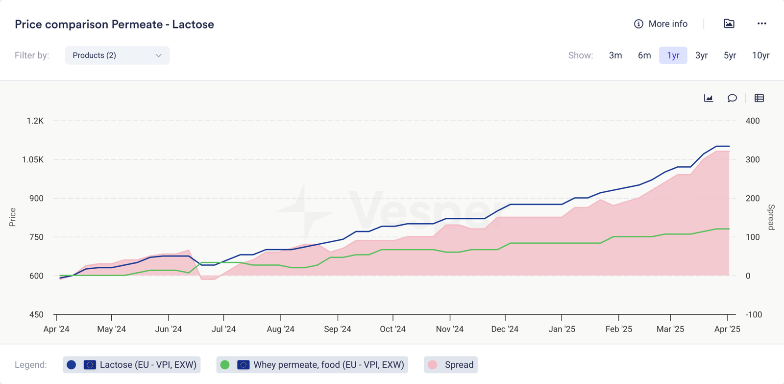 - داخل أوروبا، يتزايد الفارق بين المنفذ واللاكتوز منذ أكثر من عام حتى الآن، مما يجب أن يؤدي إلى المزيد من إنتاج اللاكتوز على حساب توفر المنفذ