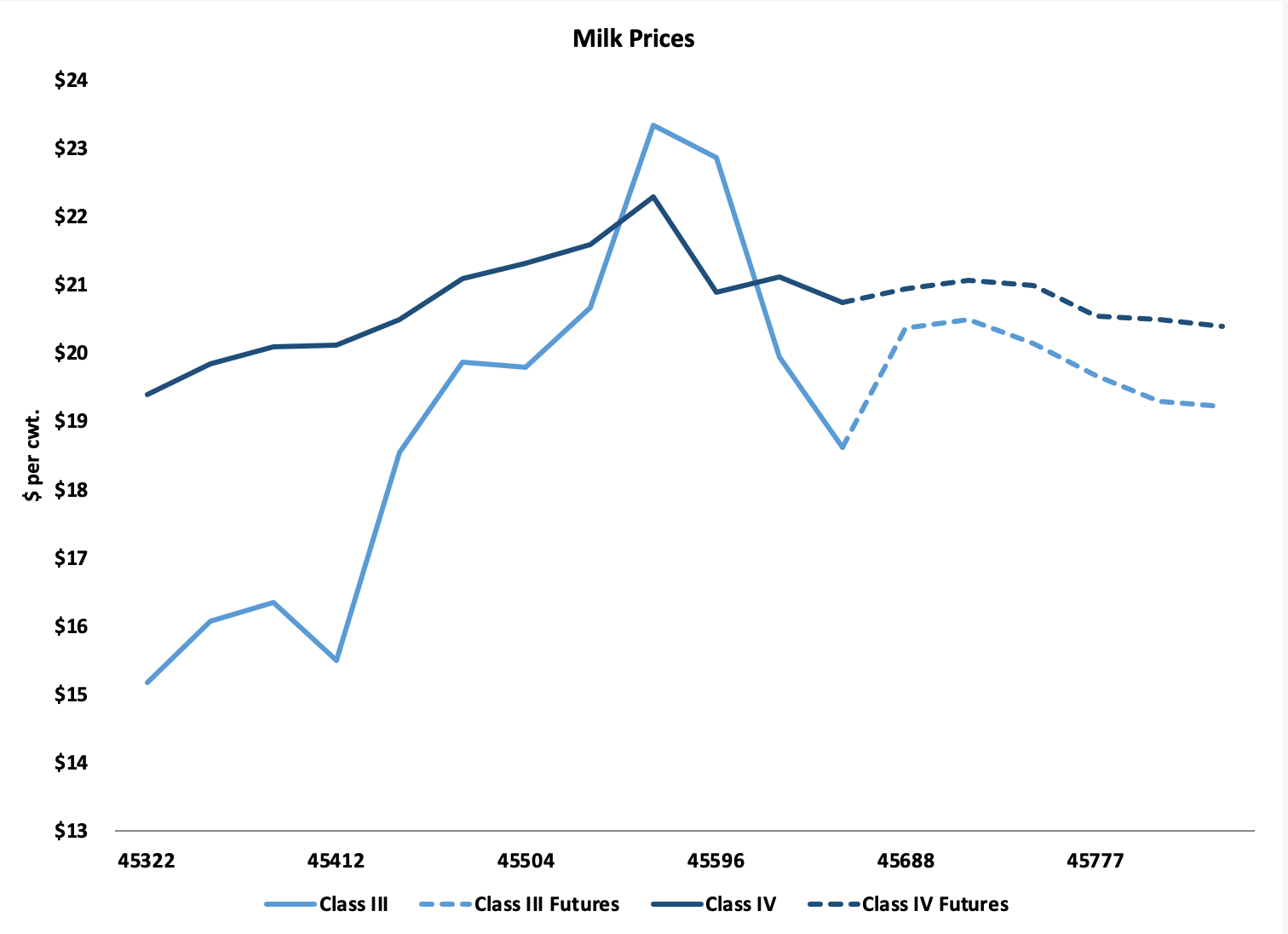 أدى الانتعاش في أسعار الزبدة والقلق بشأن إنتاج الحليب في كاليفورنيا إلى دفع عقود الفئة الرابعة من ديسمبر إلى مارس إلى الارتفاع بحوالي 30 سنتًا أمريكيًا في ديسمبر. لكن عقود الفئة الرابعة المؤجلة خسرت 40 سنتًا أمريكيًا. يفترض تجار الألبان أنه بمجرد انتهاء إنفلونزا الطيور، سيرتفع إنتاج الحليب في الولايات المتحدة، مما يزيد من الاعتماد الأمريكي على صادرات مسحوق الحليب. لكن التوقعات التصديرية غائمة بسبب احتمال نشوب حروب تجارية متعددة وعملة أمريكية قوية للغاية.