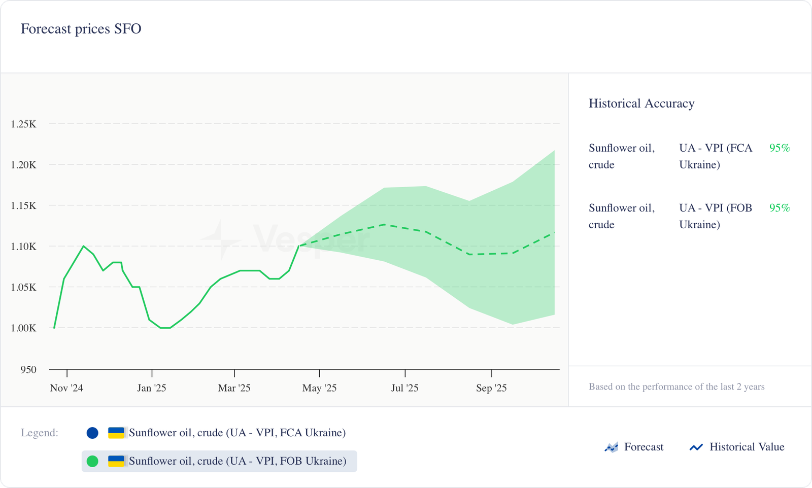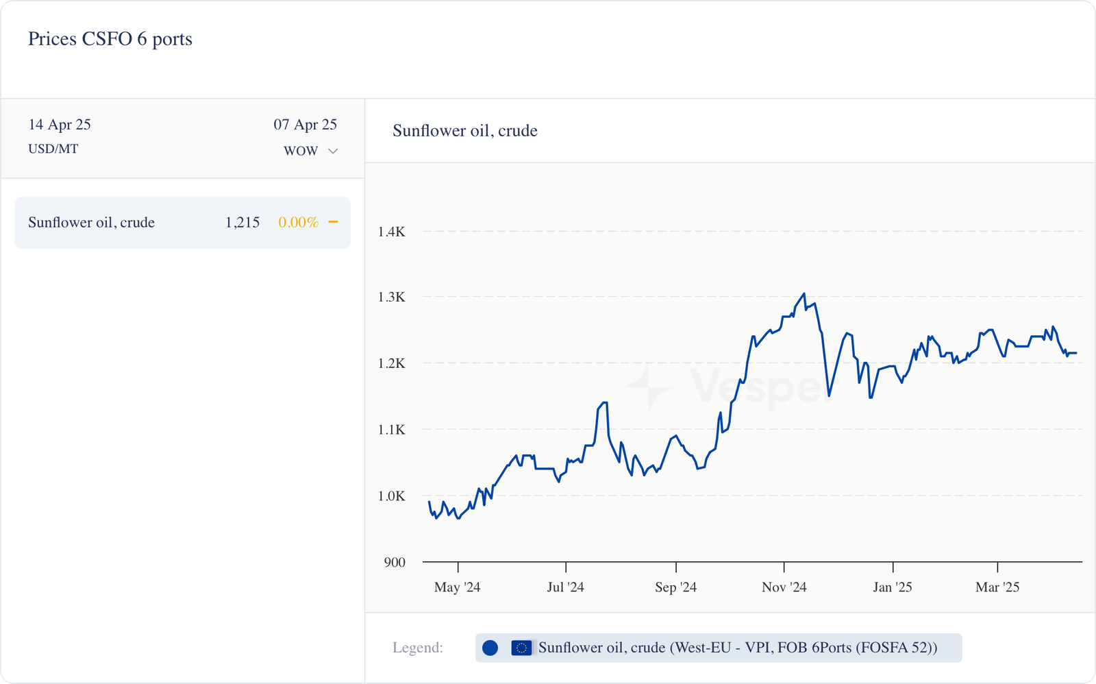 - استقر سعر FM لزيت عباد الشمس الخام (6 منافذ) عند حوالي 1215 دولارًا أمريكيًا للطن المتري، دون تغيير عن الأسبوع السابق. وفي الوقت نفسه، ارتفعت أسعار بذور الشمس الأوكرانية بالدولار الأمريكي (إلى حوالي 636 دولارًا أمريكيًا من 624 دولارًا أمريكيًا)، على الرغم من أن تقلبات العملة تعقد أرقام UAH الاسمية.