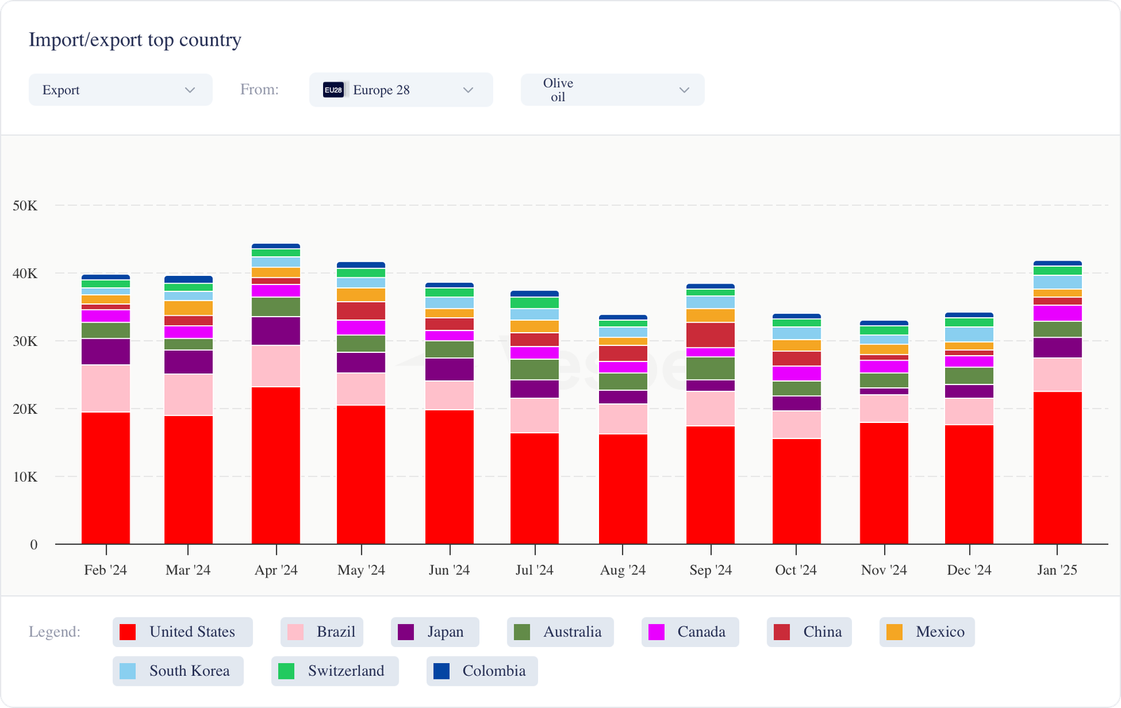 - مع وجود وقفة لمدة 90 يومًا للتعريفات الجمركية، تهرع شركات زيت الزيتون الإسبانية لتصديرها إلى الولايات المتحدة وتفكر في إنشاء إنتاج محلي للتغلب على الزيادات المحتملة في التعريفات الجمركية المستقبلية. تمثل إسبانيا ما يقرب من 40٪ من إنتاج زيت الزيتون العالمي، حيث تصدر حوالي 180 ألف طن سنويًا إلى الولايات المتحدة. نادرًا ما يتجاوز إنتاج زيت الزيتون في الولايات المتحدة 15000 طن/سنويًا، مما يؤكد الفجوة بين الإنتاج المحلي والاستهلاك – مما أثار تكهنات بإعفاء محتمل لزيت الزيتون.