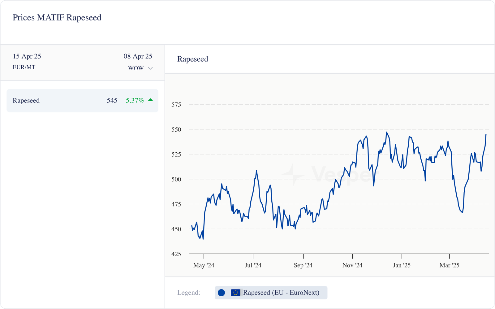 الرسم البياني 3: سعر زيت بذور اللفت في MATIF (يورو/طن متري)