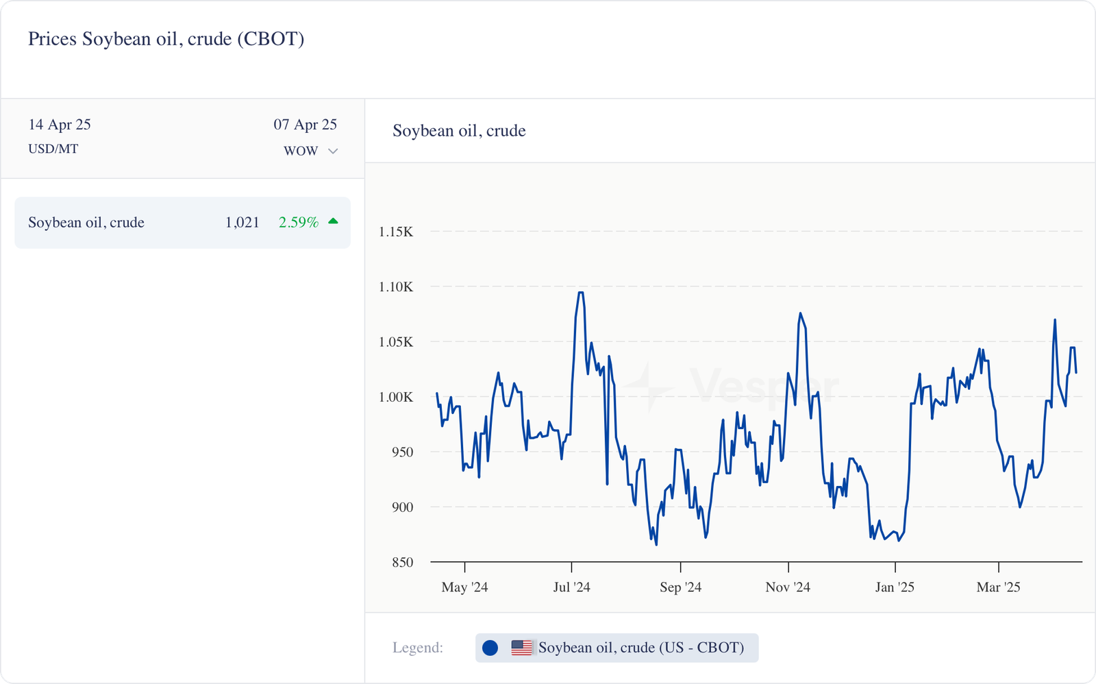 - صعد زيت فول الصويا في CBOT إلى 1021 دولارًا أمريكيًا للطن المتري (من 995 دولارًا أمريكيًا للطن المتري).