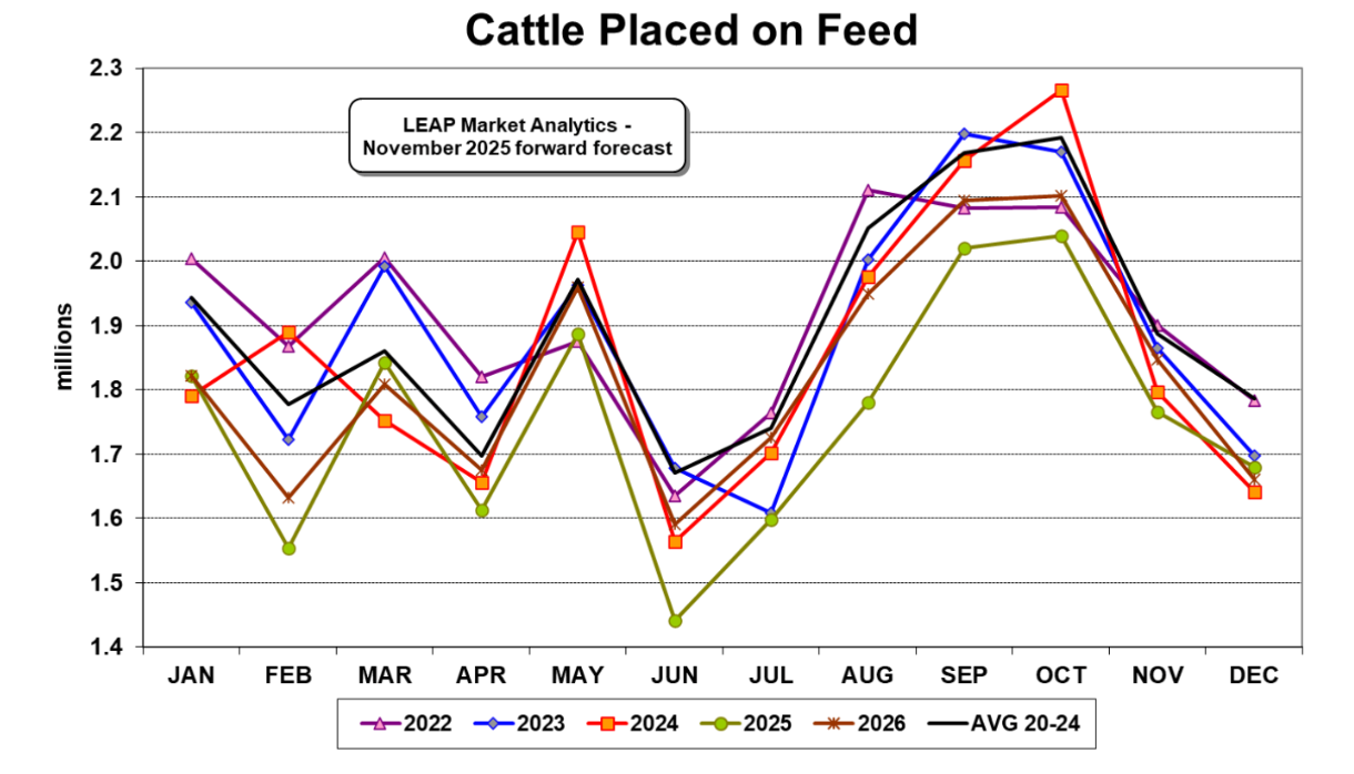 من الناحية الأساسية، لا يزال مجمع الأبقار / لحوم البقر مدعومًا بإنتاج محلي مقيد بشكل لا يصدق من لحوم البقر والطلب القوي للغاية (ولكن المشكوك فيه بشكل متزايد). هذا “إعادة ترتيب” لسلسلة التوريد المذكورة أعلاه، على افتراض أنها تتحقق، من شأنه أن يقلص مسارات تسويق الأبقار التي تم تغذيتها. تعكس توقعات الأسعار الخاصة بـ LMA إمكانية تقليص الجهود في مساحة التعبئة لبعض الوقت الآن، على الأقل جزئيًا، ولكن مع إغلاق مصنع واحد مؤكد (بغض النظر عن إعلان المتابعة المفاجئ بأنه سيتم بيعه بدلاً من ذلك) ومصنع آخر يتم “تبسيطه”، ما كان سابقًا “خطرًا على التوقعات” يمكن أخذه على محمل الجد كنتيجة محتملة، إن لم تكن مرجحة. من المحتمل أن تتبع المزيد من التعديلات على التوقعات في الأيام والأسابيع المقبلة، لكن رد فعل LMA المبكر جدًا على هذه التطورات، نظرًا لزيادة الرياح المعاكسة على جبهة الطلب، هو تغيير توقعات أسعار لحوم البقر التي تم تغذيتها بشكل طفيف للغاية على الرغم من انخفاض كبير إلى حد ما في قدرة التعبئة؛ ومع ذلك، فقد تم تقليص التوقعات لأسواق الأبقار، بما في ذلك كل شيء من الثيران والعجلات التي تم تغذيتها إلى أعلى في سلسلة التوريد إلى العجول الفطيمة بشكل ملحوظ.