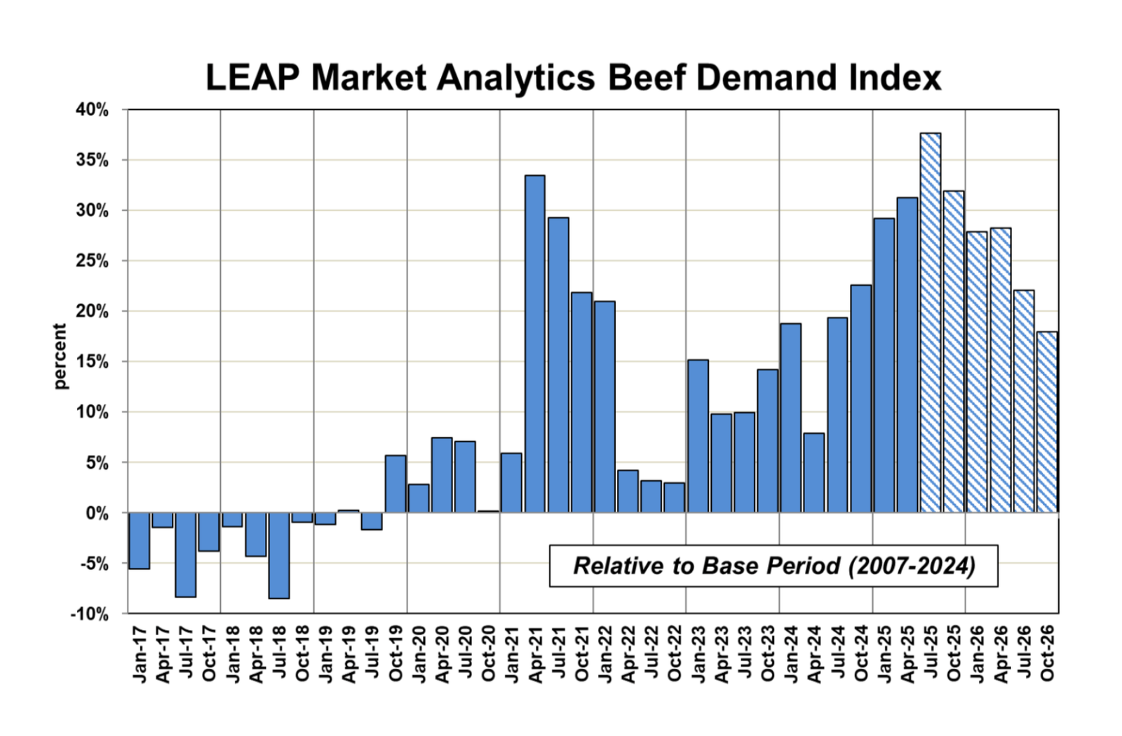 يبدو أن أسواق الماشية (المغذية والمغذية) لديها المزيد من إمكانات الهبوط مما يوحي به سوق العقود الآجلة، مع تلوين نظرة LMA الأساسية من خلال توقعات الطلب المتزايد على لحوم البقر.