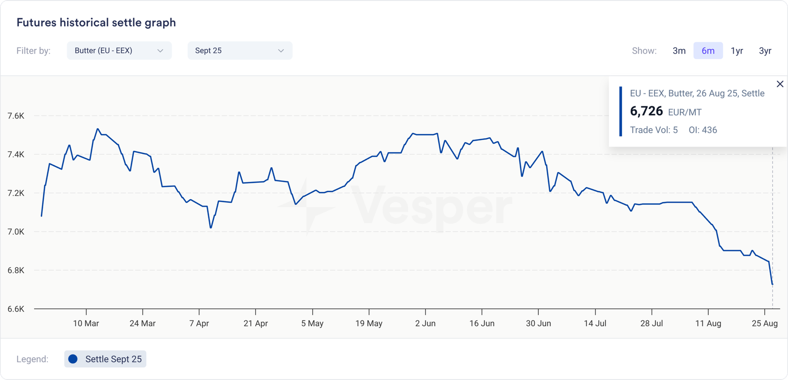 - تقود العقود الآجلة الطريق، حيث يتم تداول أسعار الربع الرابع والربع الأول وما بعدهما الآن بأقل من 6700 يورو/طن متري في بورصة EEX بسبب الاعتقاد القوي بوجود إمدادات زبدة أعلى بكثير
